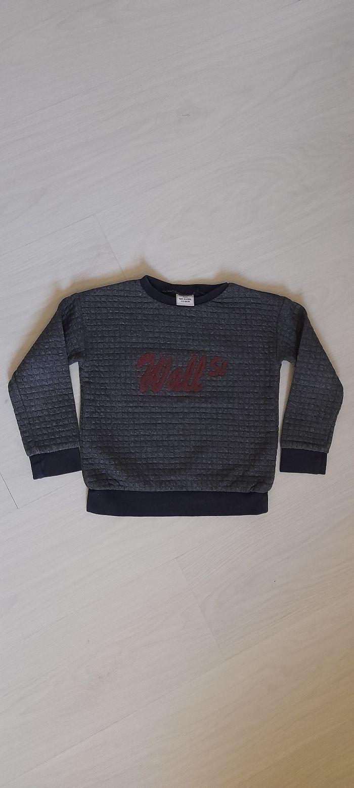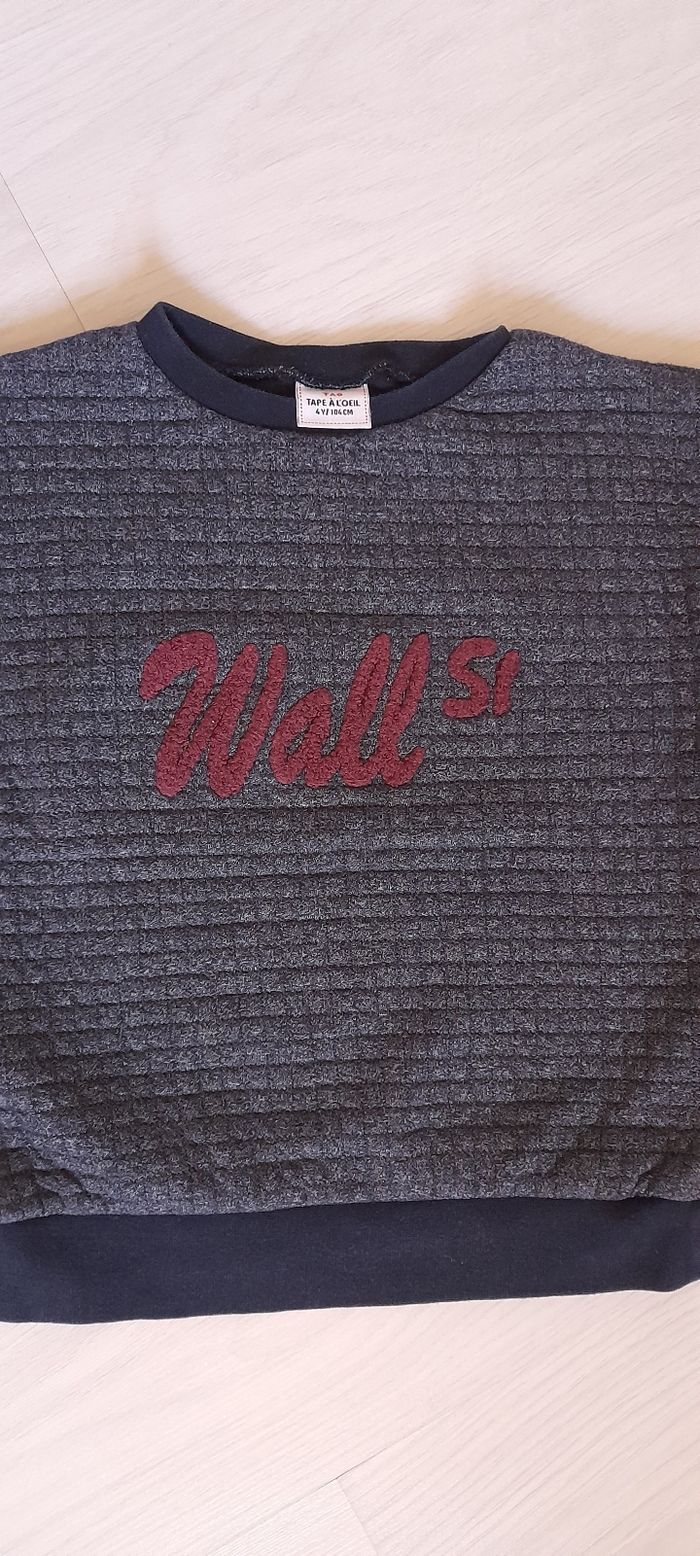 Pull T 4 ans Marque TAPE A L'ŒIL Couleur gris anthracite et noir avec Inscription bordeaux 55 % Polyester/ 43% coton et 2% Elasthane Très très bon état
