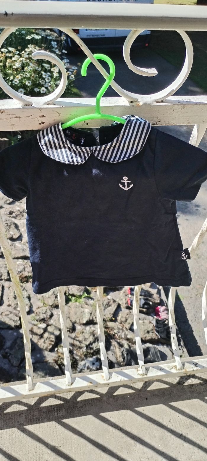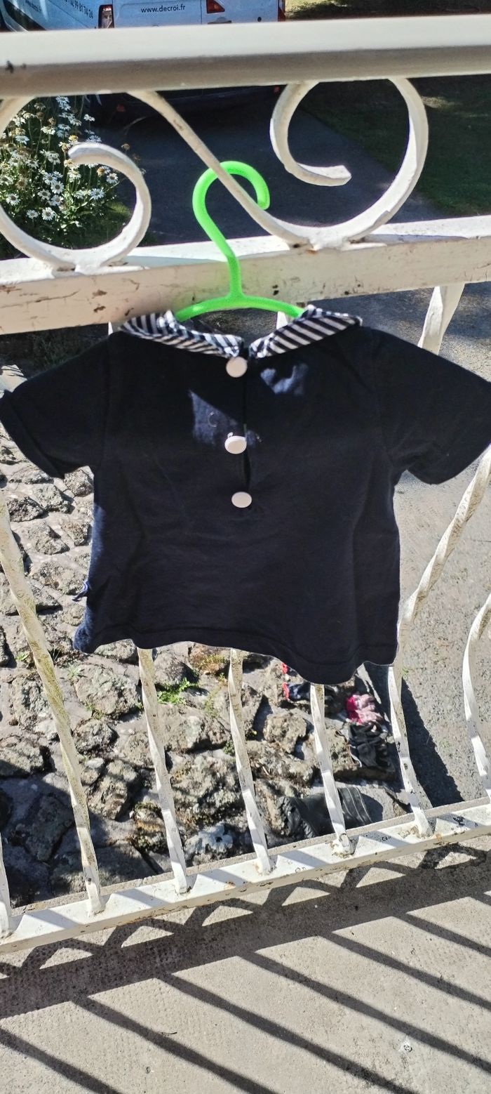 T Shirt bleu marine à manches courtes pour fille. Marque Les Petits Cœurs À La Mer. Taille 3 mois. Comme neuf. Que mondial relais ou Relais Colis.