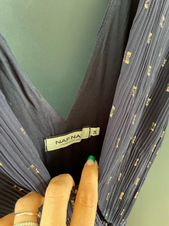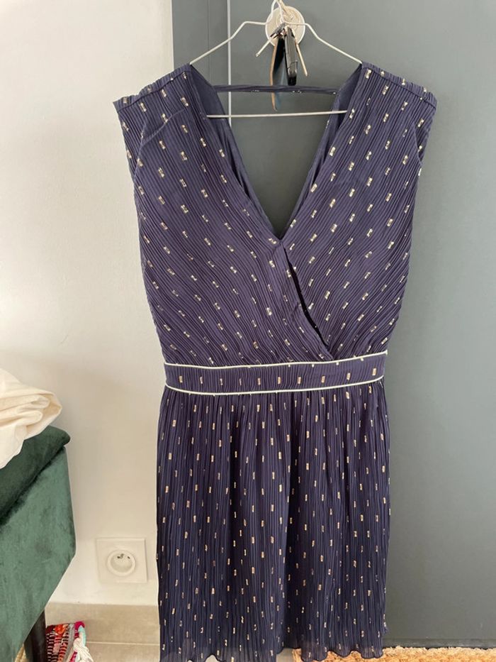 Robe parfaite pour une soirée d’été ou un mariage Bleu marine avec détails dorés Taille 34 Portée 1 fois