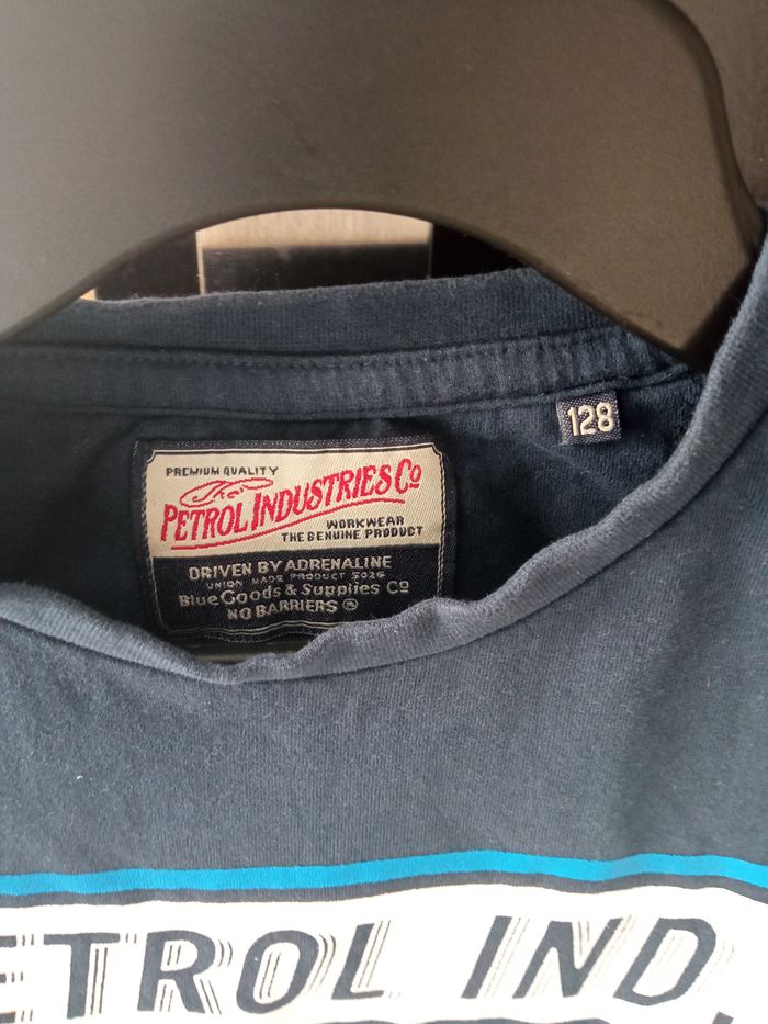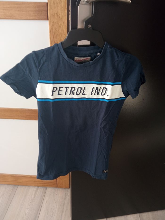 t shirt pétrole tres peu porté bleu et bande blanche taille 8 ans