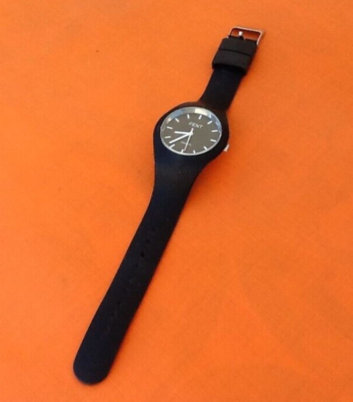 (pour cet article, nous offrons une seconde pile). Montre (Quartz) Fent Boitier : 40mm Bracelet silicone noir Largeur : 18mm Longueur totale : 240mm Poids : 40grs