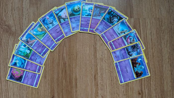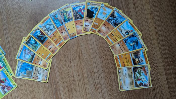 Lot de 50 cartes : - 5 cartes holographiques - 15 cartes de type Poison - 15 cartes de type Combat - 15 cartes de type Plante Ce sont des cartes françaises, en très bon état et sans doublon.