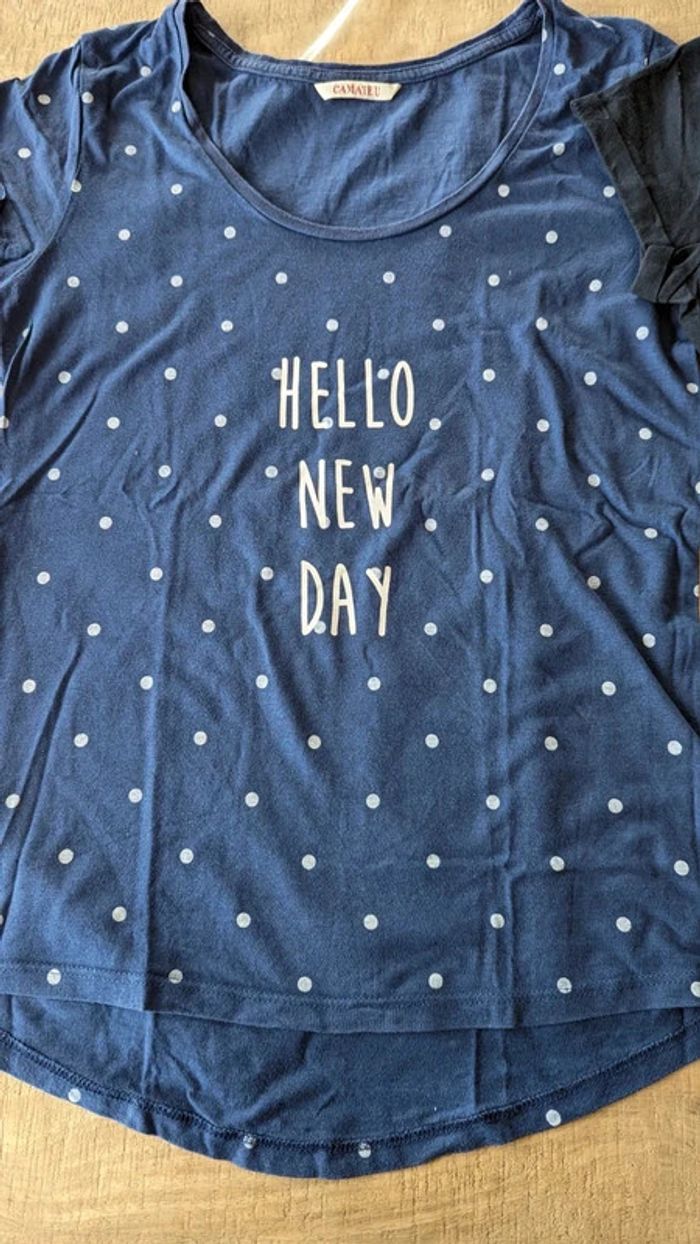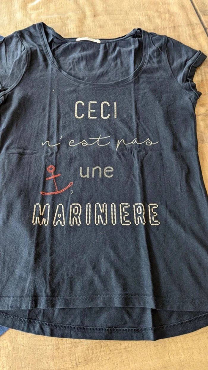 1 tee shirt bleu et 1 bleu marine. Les étiquettes taille ont été coupées mais c'est du 38 pour les 2 tee shirts.