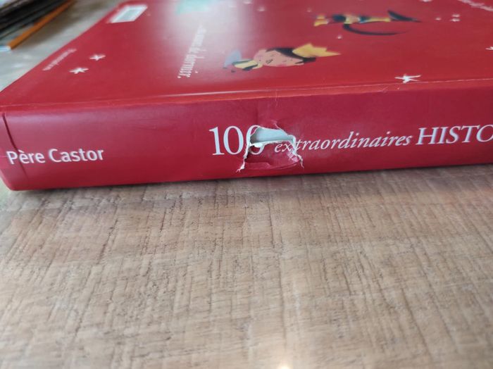 La couverture extérieure est abîmée sur la tranche (voir dernières photos) et le dos mais l'intérieur est en bon état.