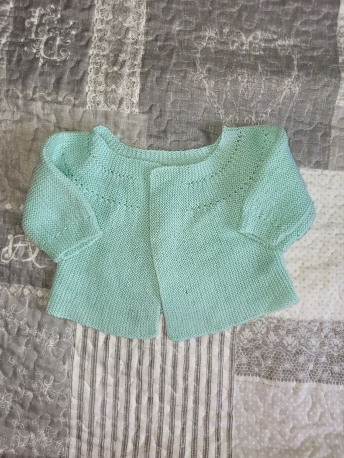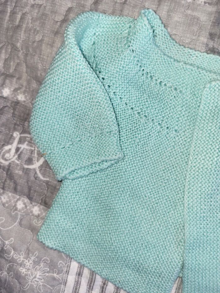 Gilet bleu turquoise fait à la main, taille naissance/1mois, très bon état. #floreteddy_bébé