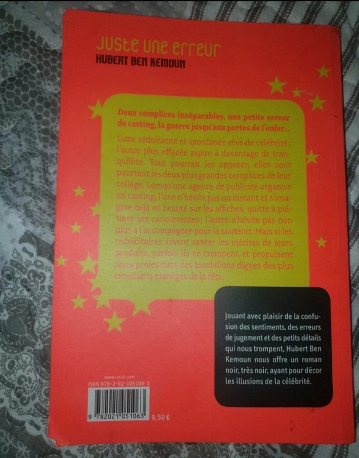 Livre "Juste une erreur" d'Hubert Ben Kemoun. Acheté à 9€50. Très bon état.