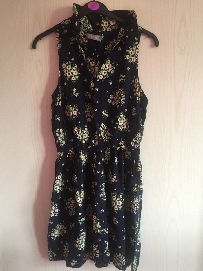 robe sans manches bleue marine à fleurs - photo numéro 1