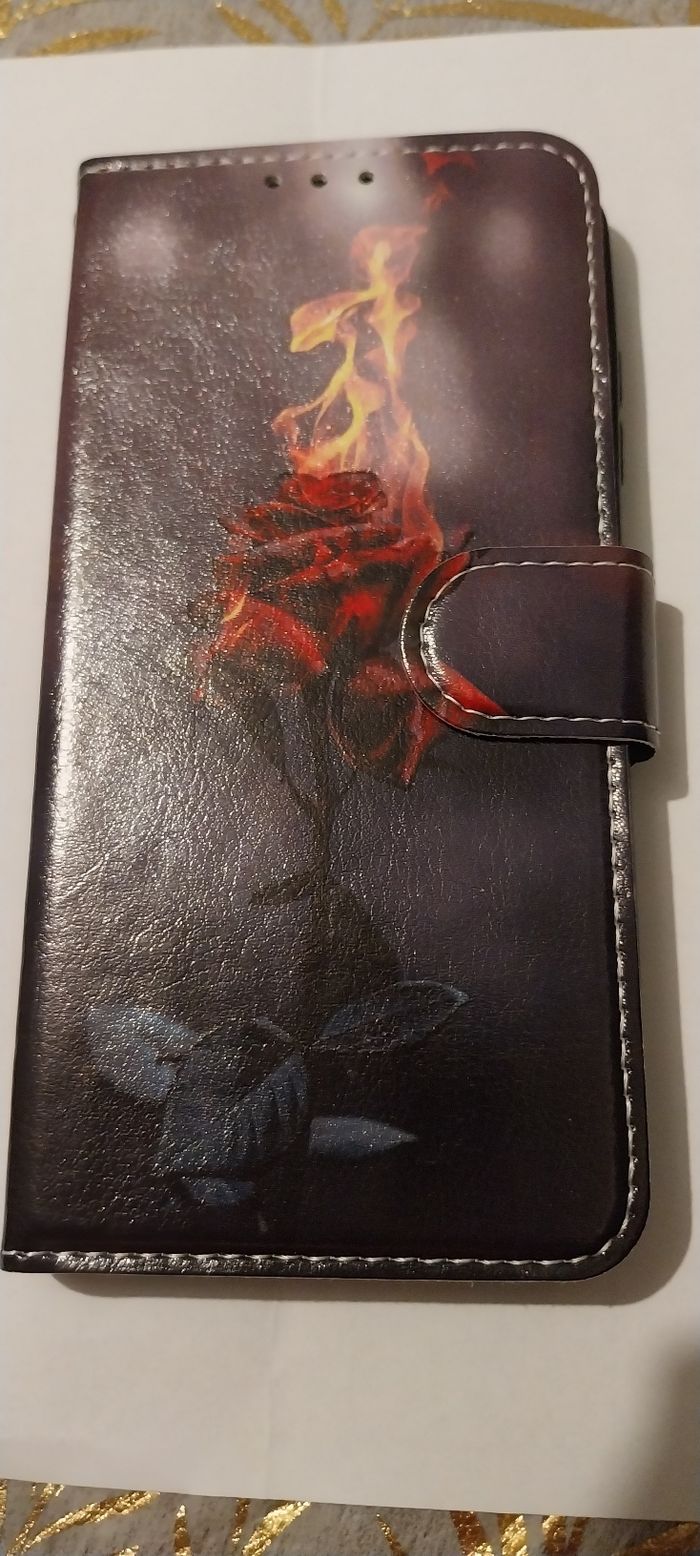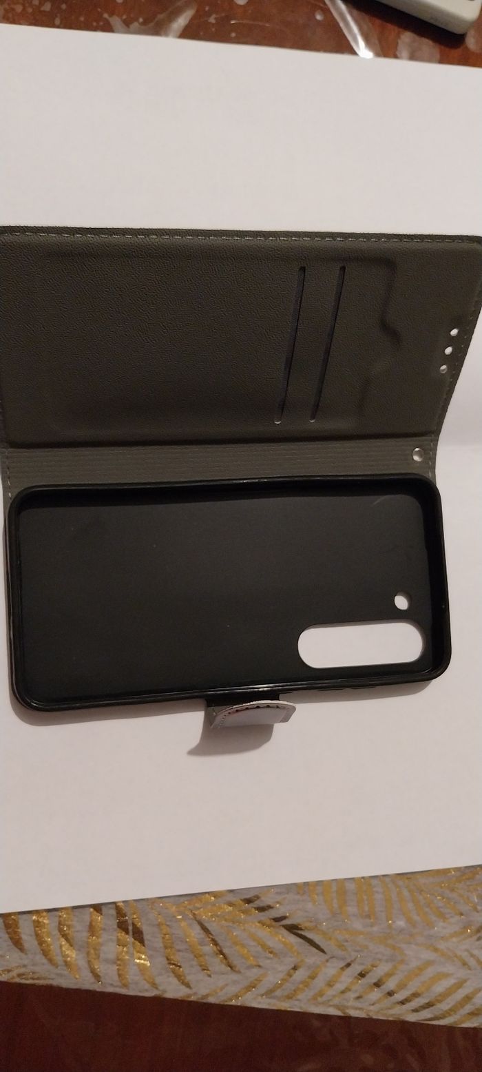 Fermeture magnétique Possibilité de ranger 2 cartes à l'intérieur Neuf jamais utilisé Vend car erreur de coque à la commande