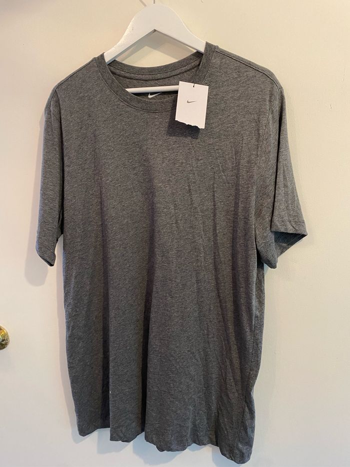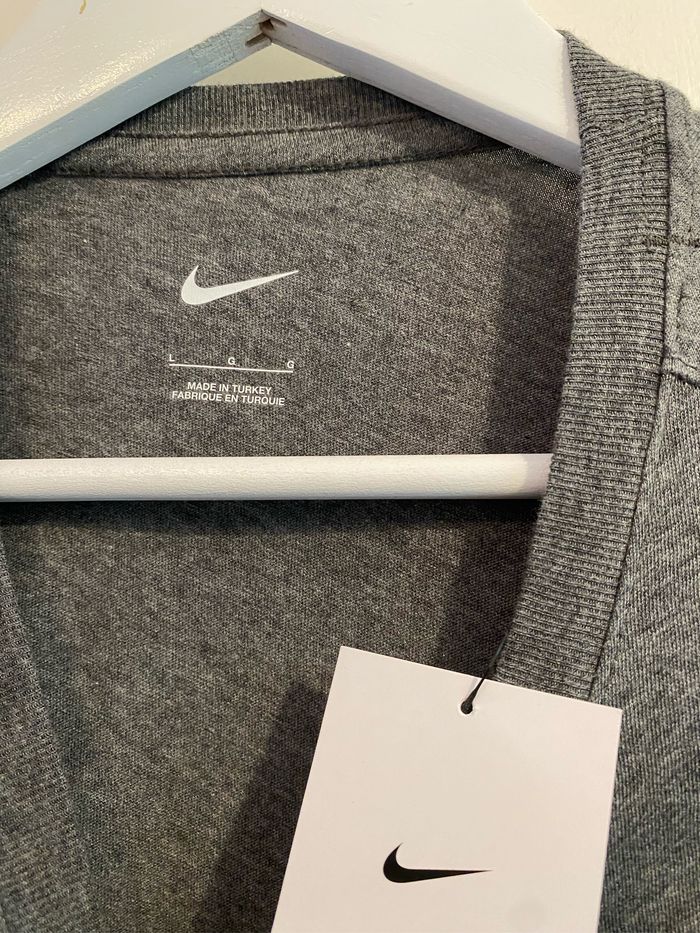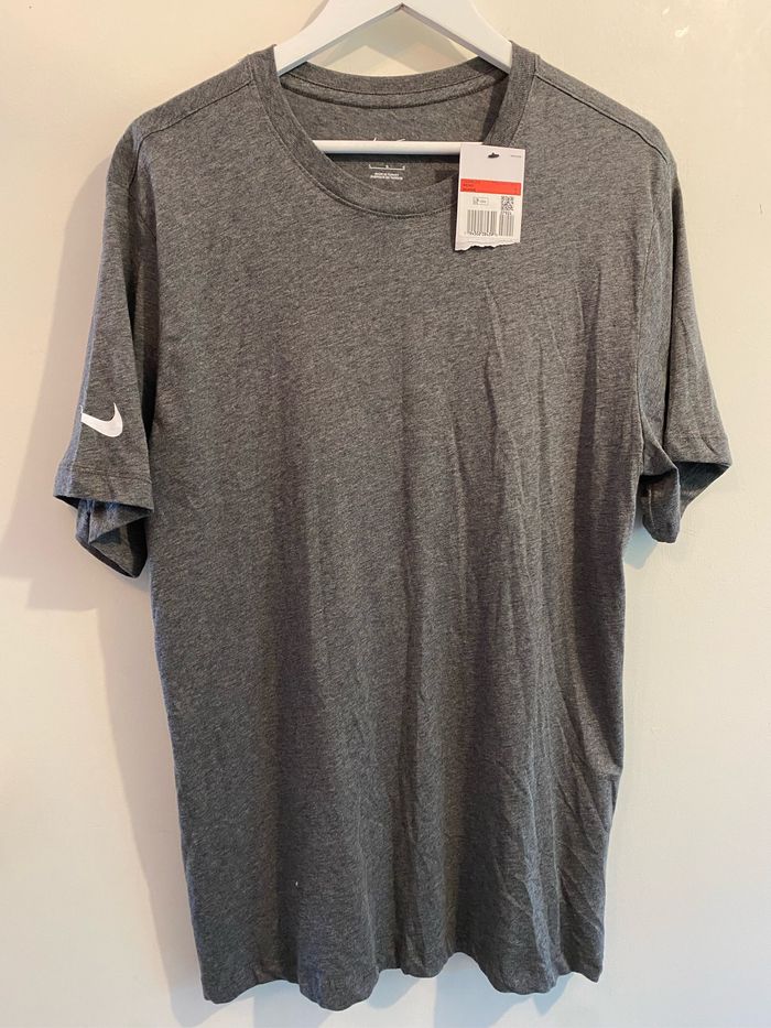 T-shirt Nike Performance, modèle basique gris (grauweiss). Style classique, confortable et polyvalent. ✅ Model : Nike Performance 👕 Taille : L 🔖État : Neuf 🏷️ Prix boutique : 64 € ✔️ Logo Nike sur le bras 🧵 Matière : 100% coton