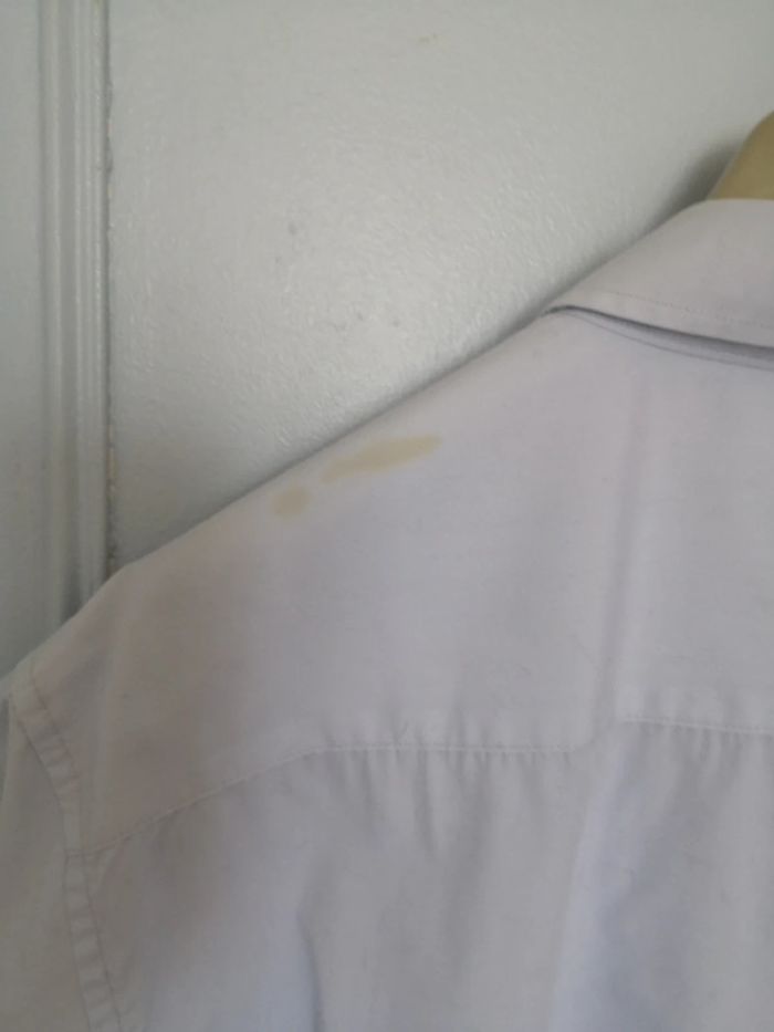 Chemisette homme, taille 43/44 bleue ciel. Attention une tache au niveau de l épaule gauche