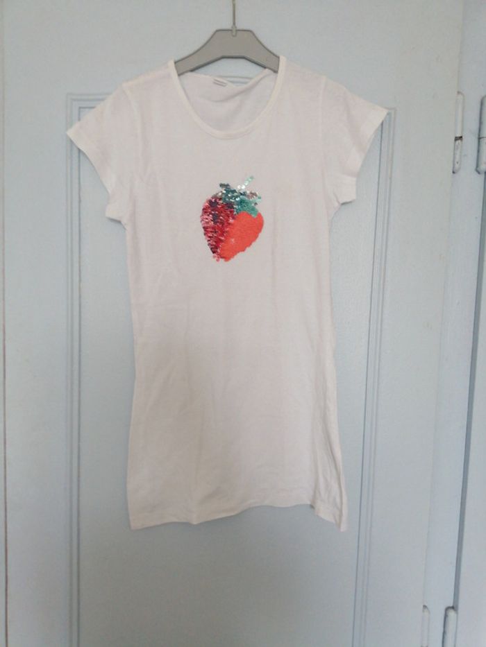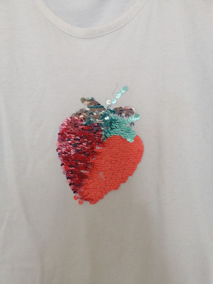 T-shirt fille blanc avec sequin en forme de fraise de taille 13 ans