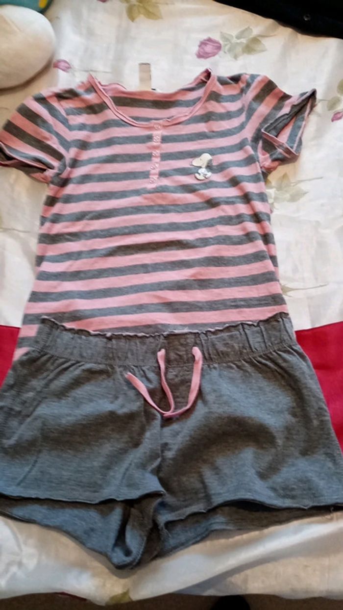 Pyjama short snippy rose et gris de taille S de marque H&M Acheté à une vintie mais trop petit pour ma fille