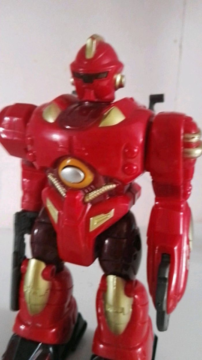 Petit robot rouge de 18cm environ, qui avance et qui s allume