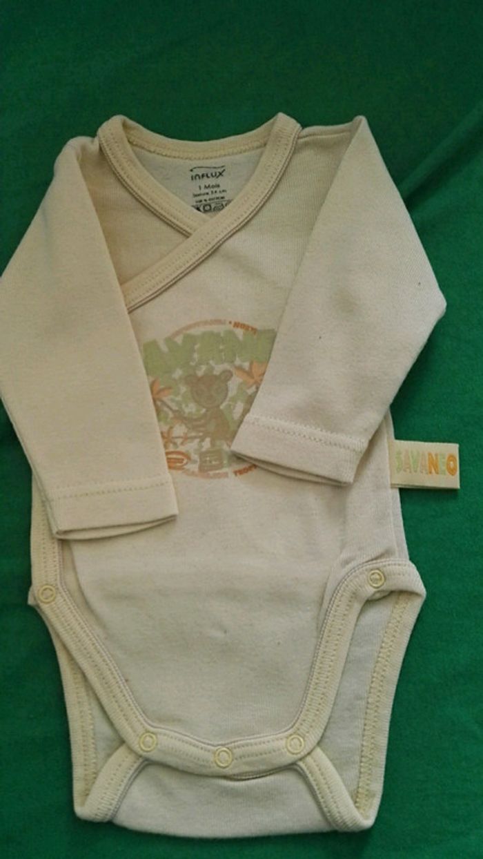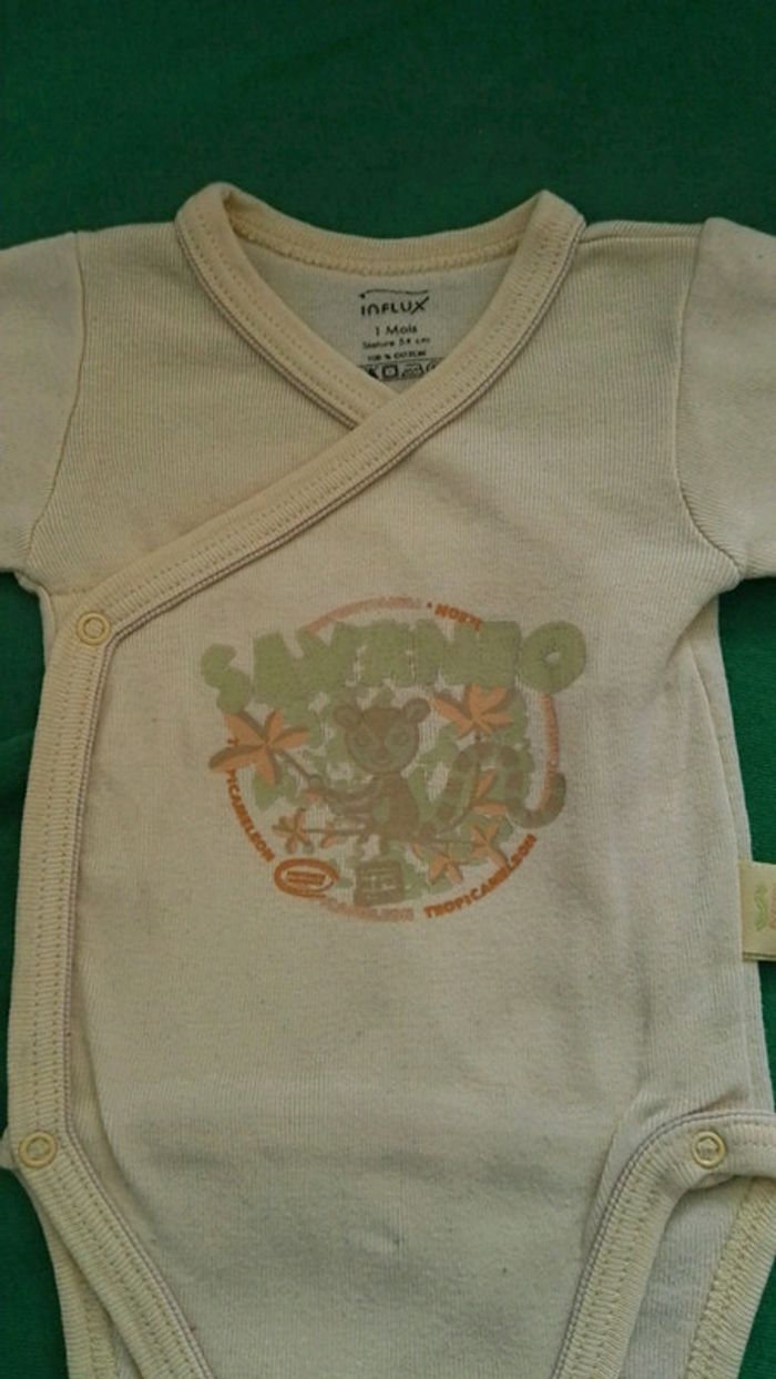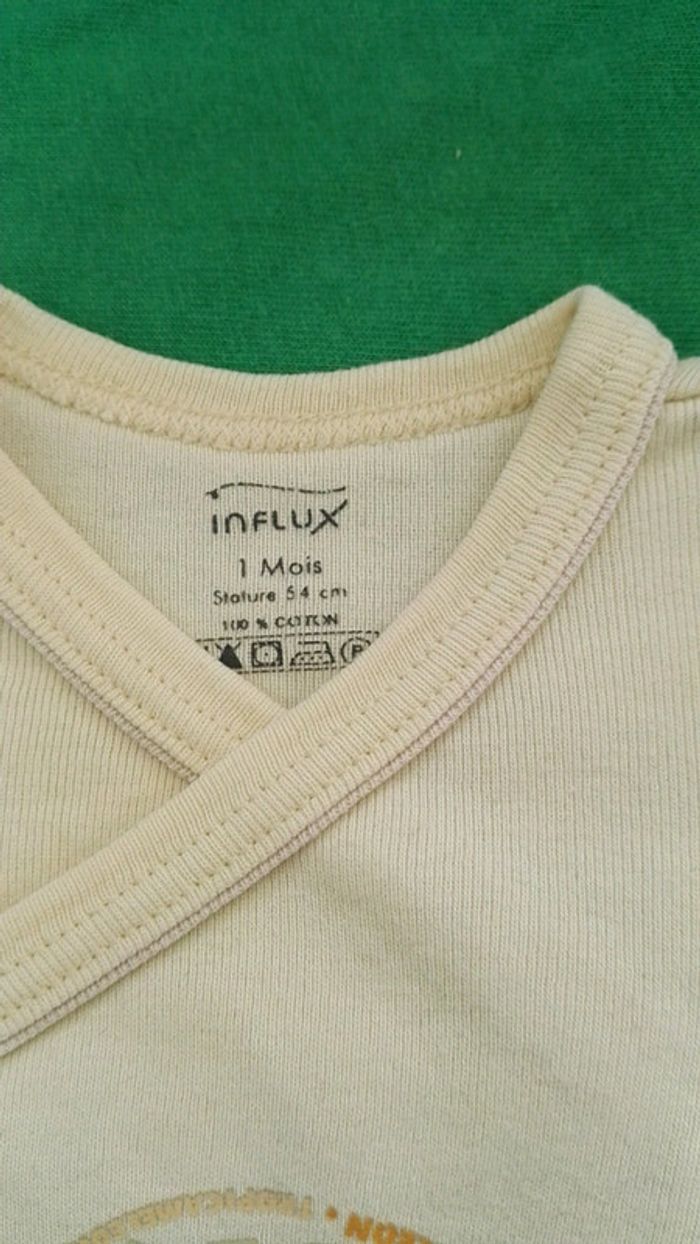 Petit bodies jaune pâle avec un.dessin devant, de taille 1 mois de marque influx