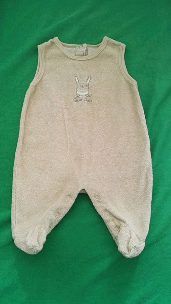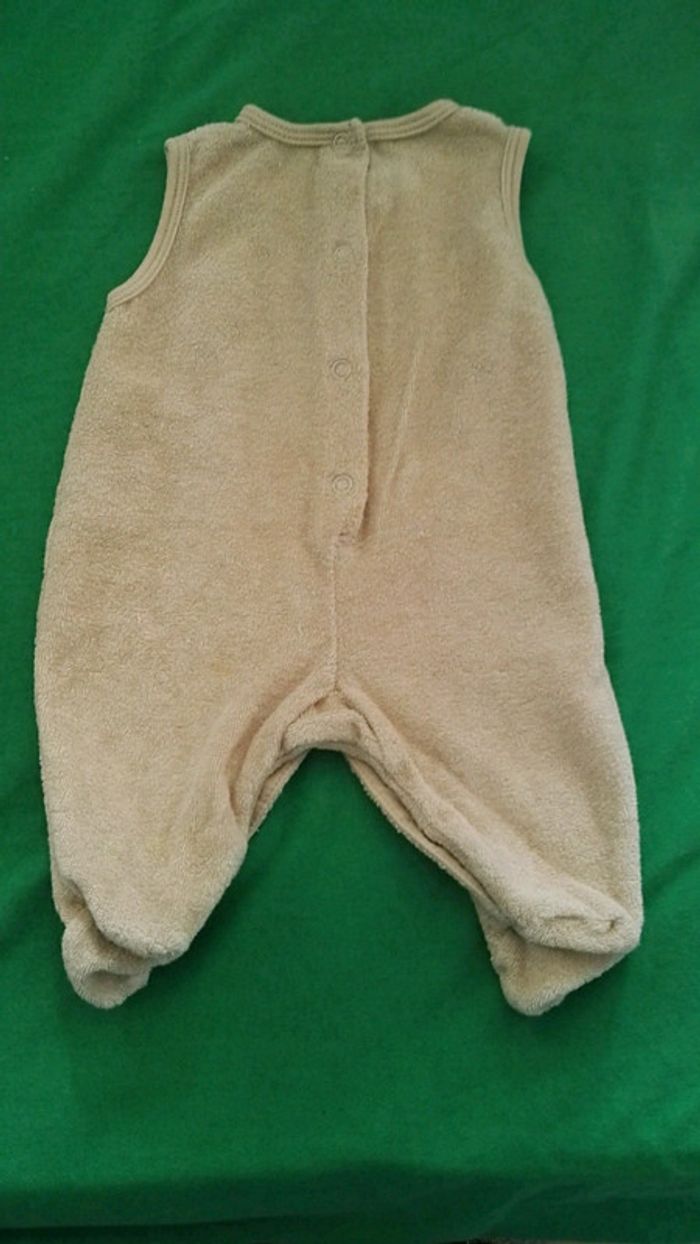 Pyjama sans manche, beige de taille naissance, de marque canari baby, petite tache a l arriere.