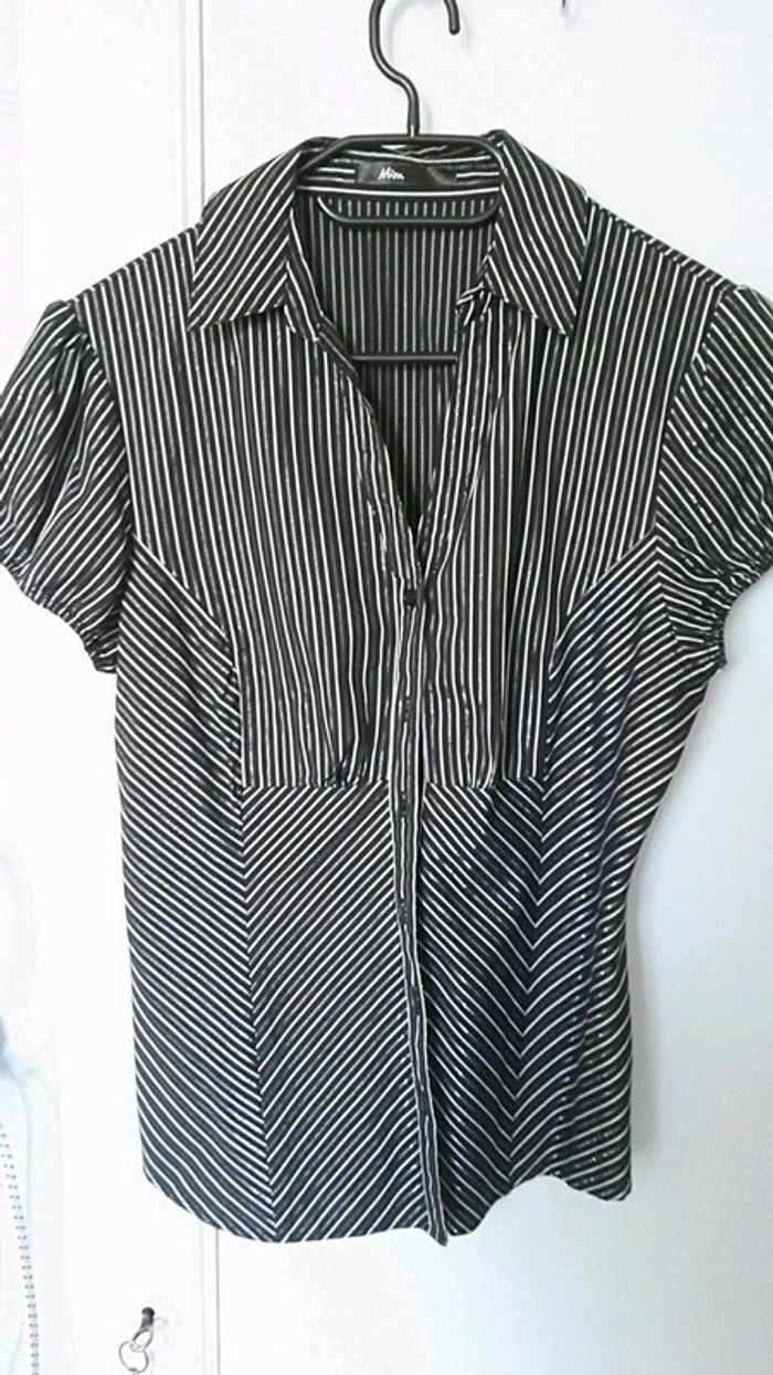 Chemise à manche courte noir à rayures grises, de marque Mim, taille 42