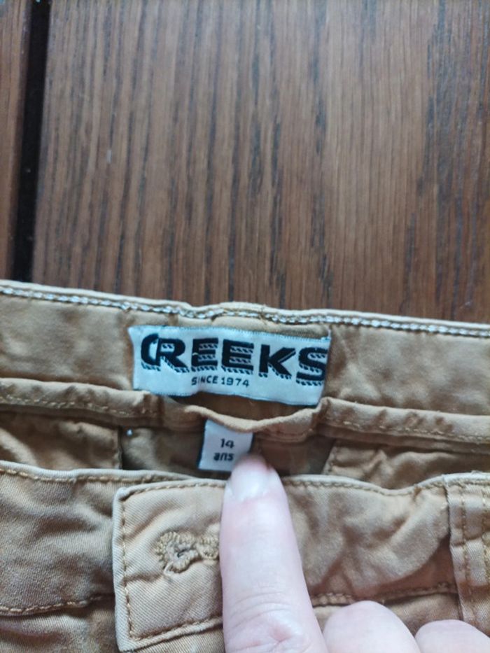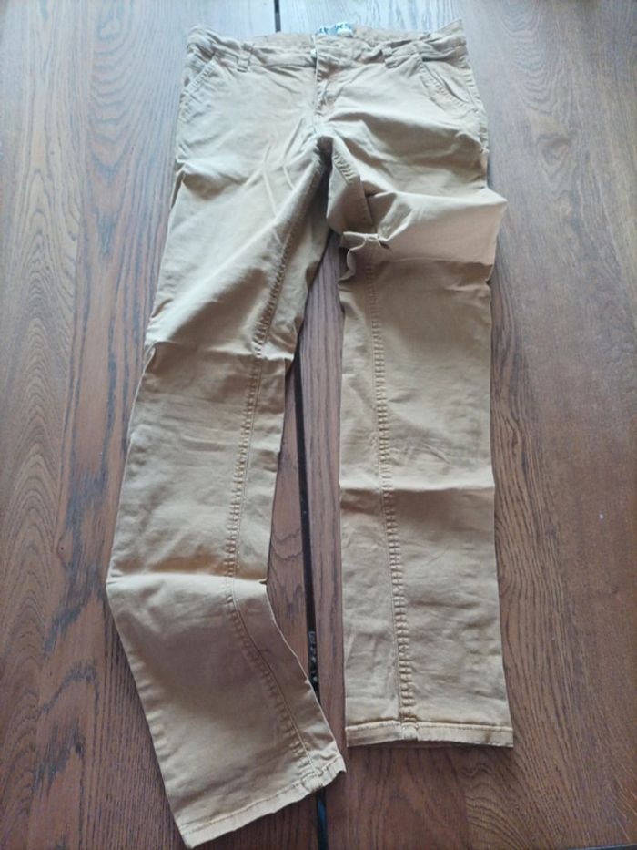 Ajustable à la taille grâce aux élastiques. Pour la couleur je dirais moutarde "traditionnelle", foncé.