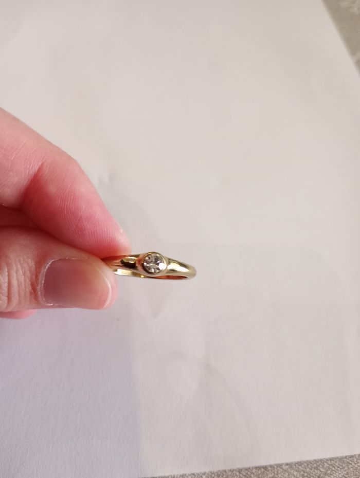 Bague dorée avec faux diamant. 19 mm. Très bon état