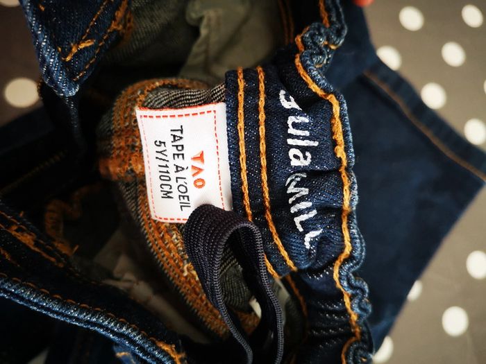 110 cm Légèrement delavé Se sert à l'intérieur de la taille #jeangarçon5ans #tapealoeilgarcon