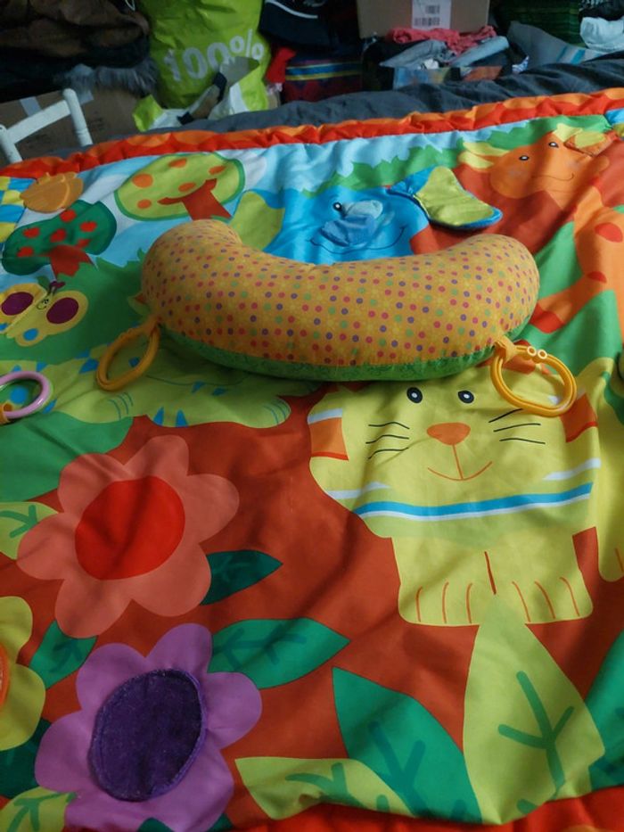 Tapis d'éveil qui a été utilisée quelques fois mais pas longtemps car ma fille s'est vite mise à ramper. Il y a un coussin avec (voir photo) Sera nettoyer avant envoie. N'hésitez pas réduction de lot actif 😉 colis envoyer dès le lendemain de l'achat pour une réception rapide 😉 #nolwenn1998_jeux_bébé