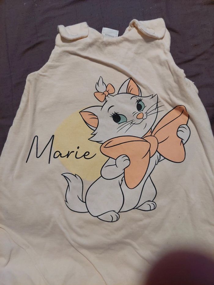 Gigoteuse fille Marie des aristochats comme neuf à été utilisée que 2 nuits ma fille aime pas trop trop les gigoteuse. Par pressions au niveau des épaules .Dessin nickel pas abîmé. Il y a des pressions a l'arrière pour ajuster a la taille de bébé. TOG: 0.5
