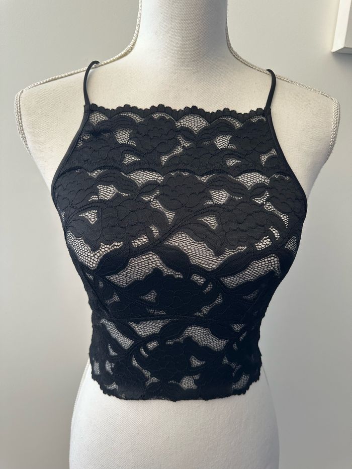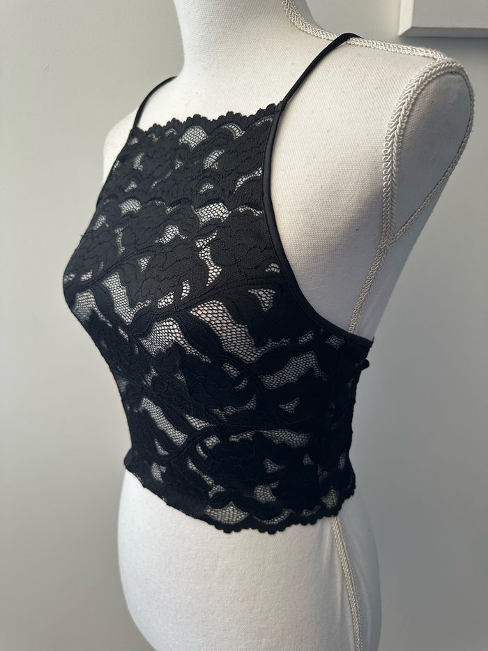 Crop top en dentelle noire transparente Vintage T38 M - photo numéro 1