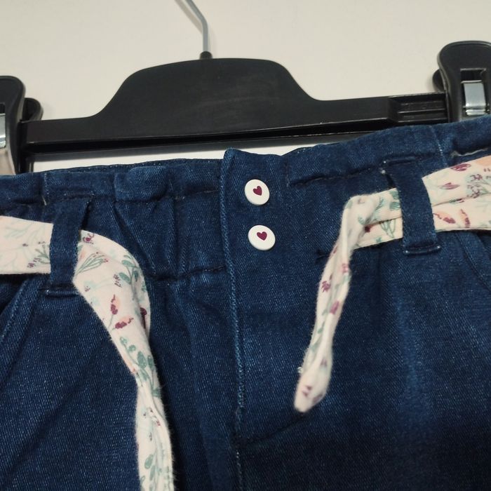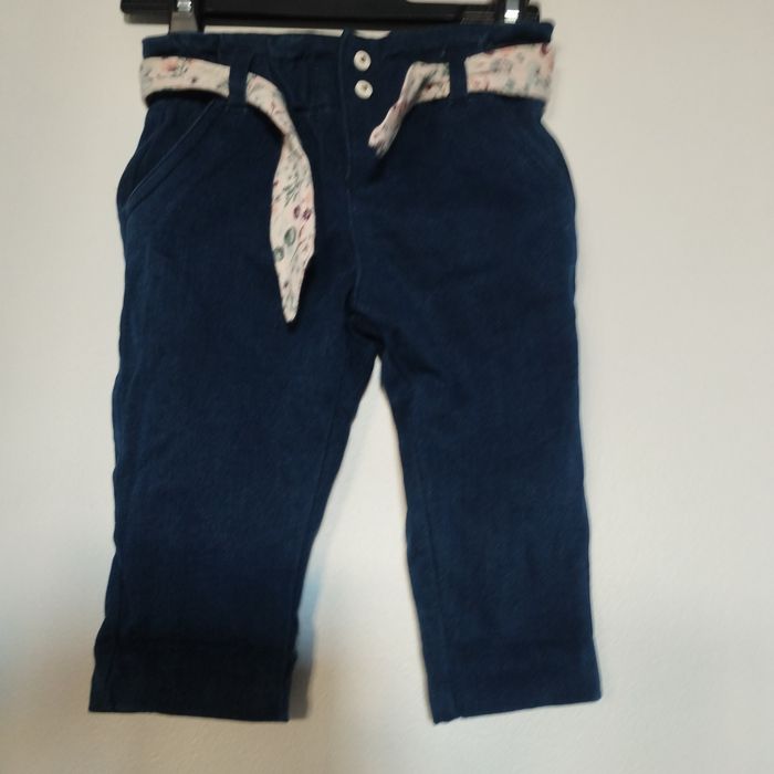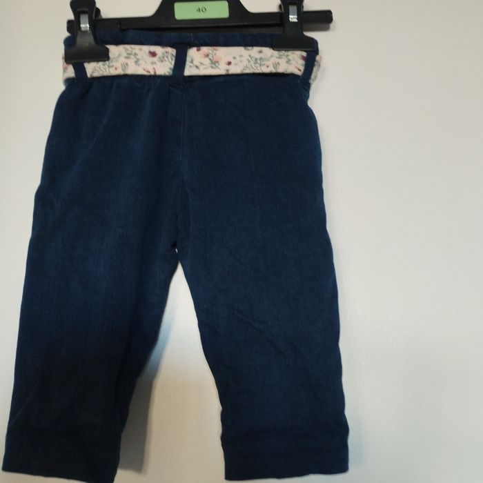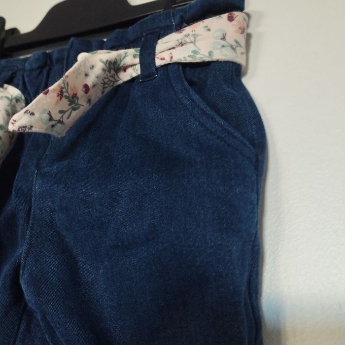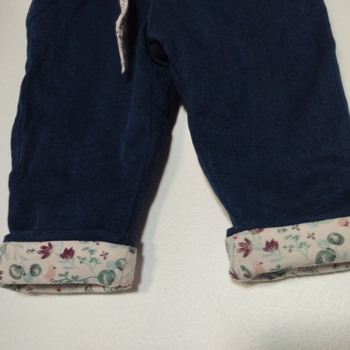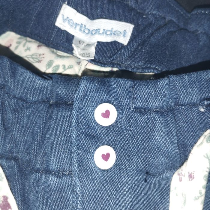Jeans pour bébé de 6/9mois de Vert Baudet. Entièrement doublé intérieurement du tissus fleuri. Boutons pressions et taille élastique. Comme neuf ! Coton Polyester Elasthanne
