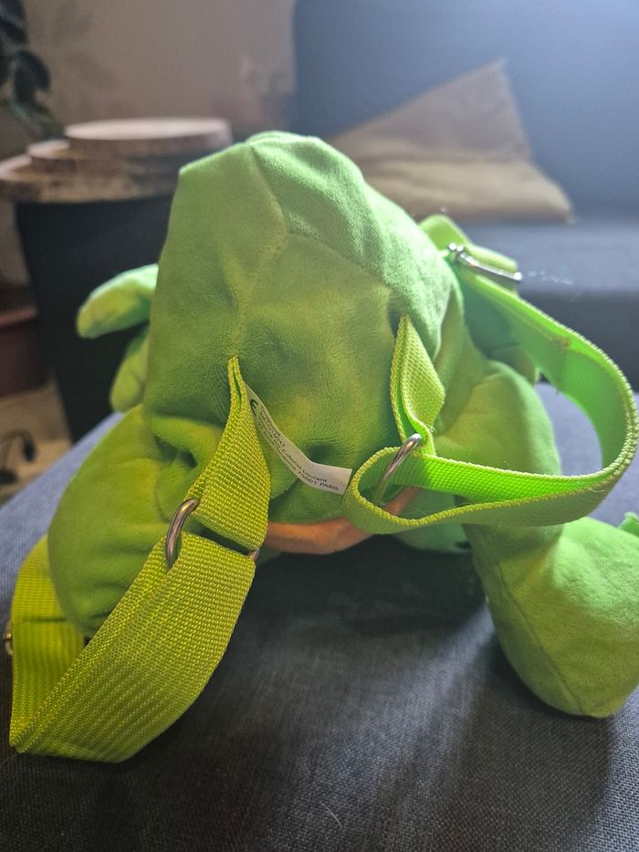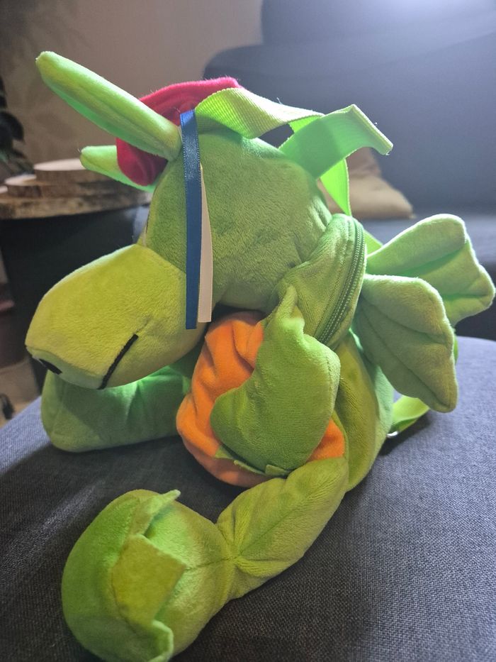 Original petit sac à dos dinosaure. " Dragounet " Pour tout petits. Ouverture avec une petite fermeture éclair dans le dos. Voir dernière photo , petite imperfection pourtant je ne l'ai jamais utilisé. (trop rien)