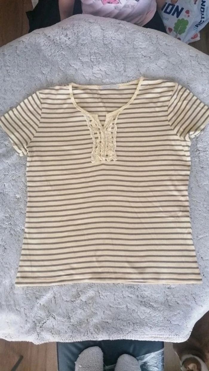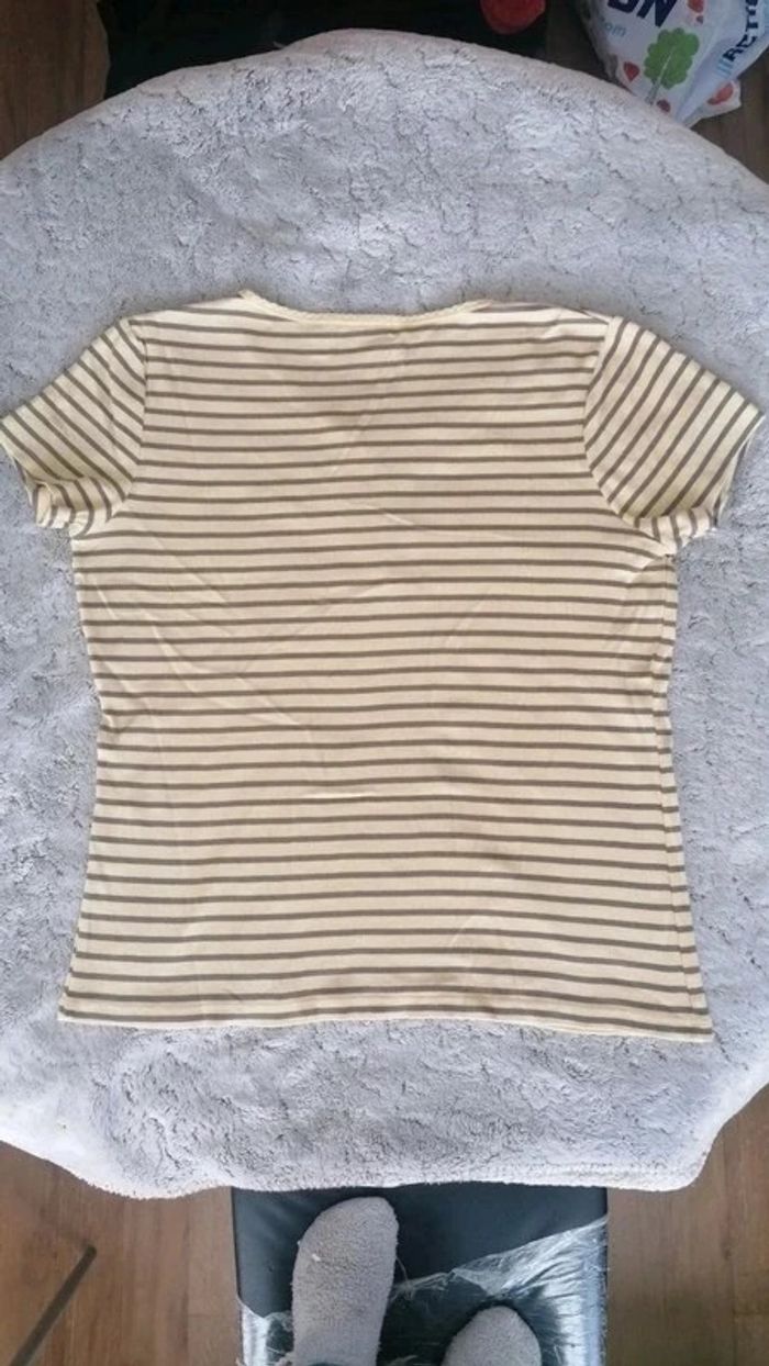 Haut Thiery Armand jaune à rayures marron claire. Taille 4 100% coton #hautstelpha #taille42telpha #taillexltelpha