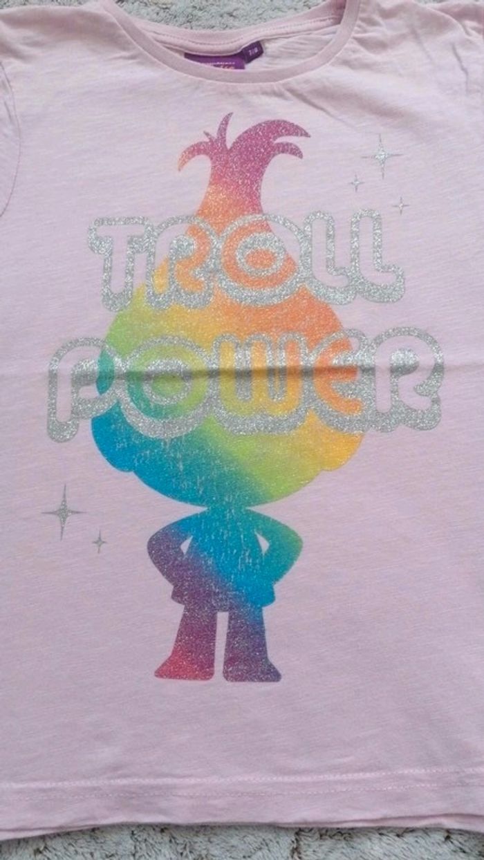 Tee-shirt super sympa avec la Princesse Poppy du dessin animé Les Trolls. Le dessin est un peu use, mais leger😉 100% coton #hautstelpha #7anstelpha #8anstelpha