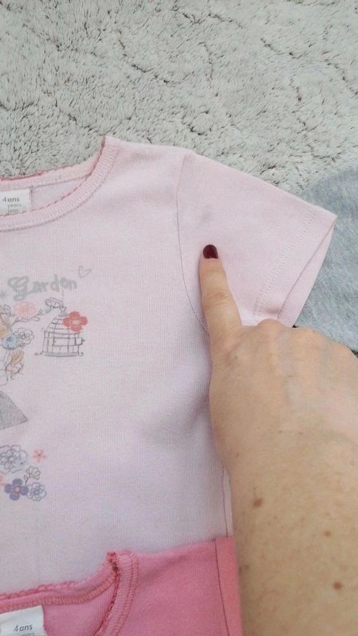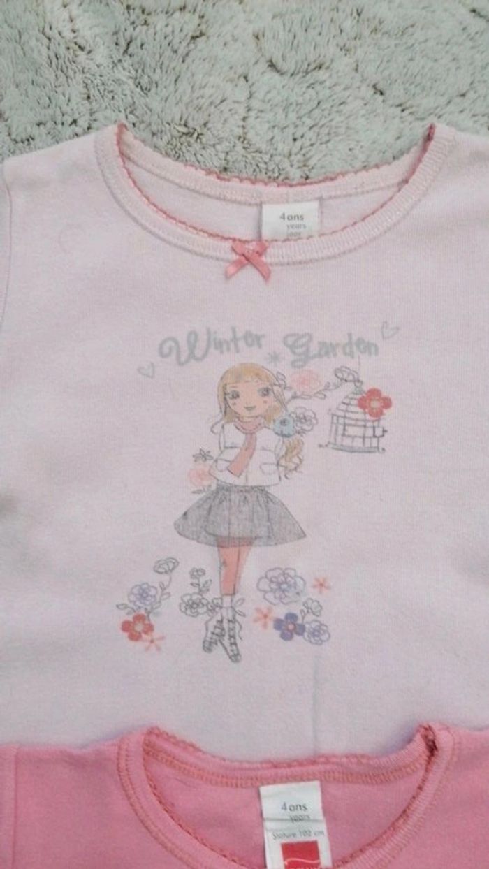 Lot de 5 sous tee-shirt en coton, pour tenir bien chaud😁 Taille 4 ans et 5 ans 😓 une petite trace au niveau de l épaule sur le rose claire #lotvetementstelpha #hautstelpha #4anstelpha #5anstelpha