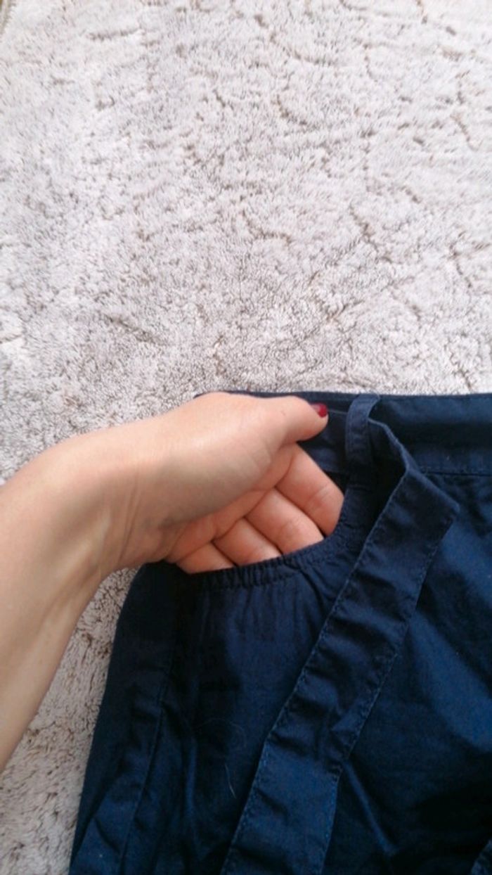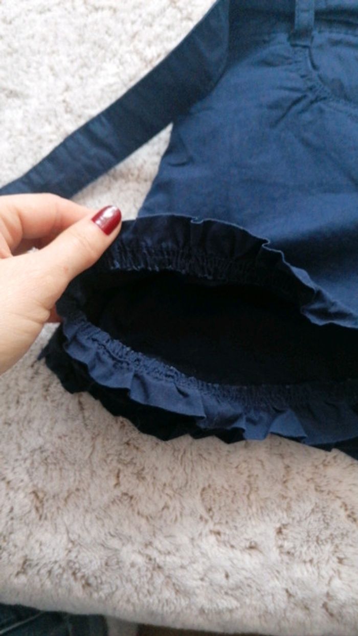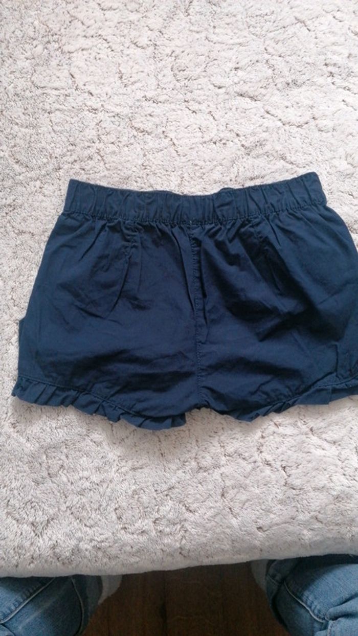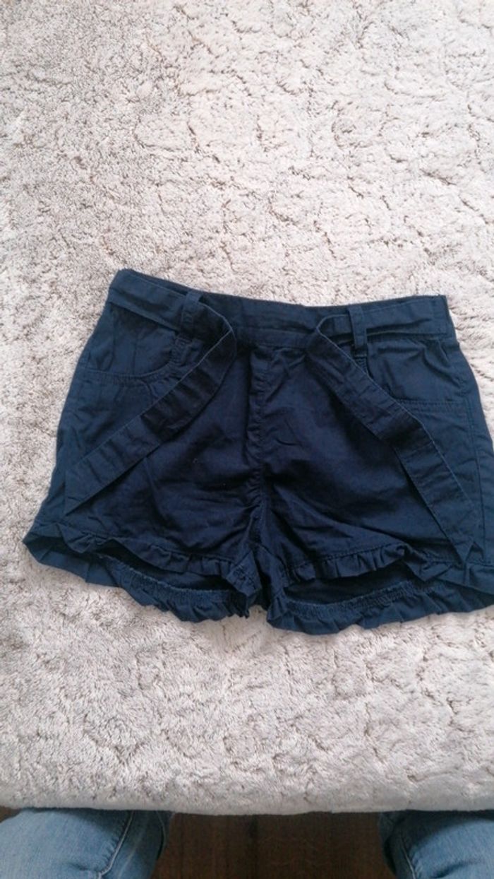 Très beau petit short bleu marine. Petits volants, avec 2 poches latérales, noeud à nouer devant. Taille élastique. 100% coton #shortstelpha #10anstelpha