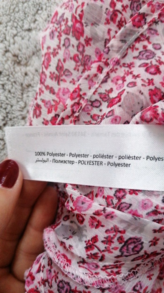 Très joli haut parfait pour l' été. Il a de nombreux volants. Fermeture éclaire sur le côté. Fines bretelles. 100% polyester Taille 4 ans Orchestre #hautstelpha #4anstelpha
