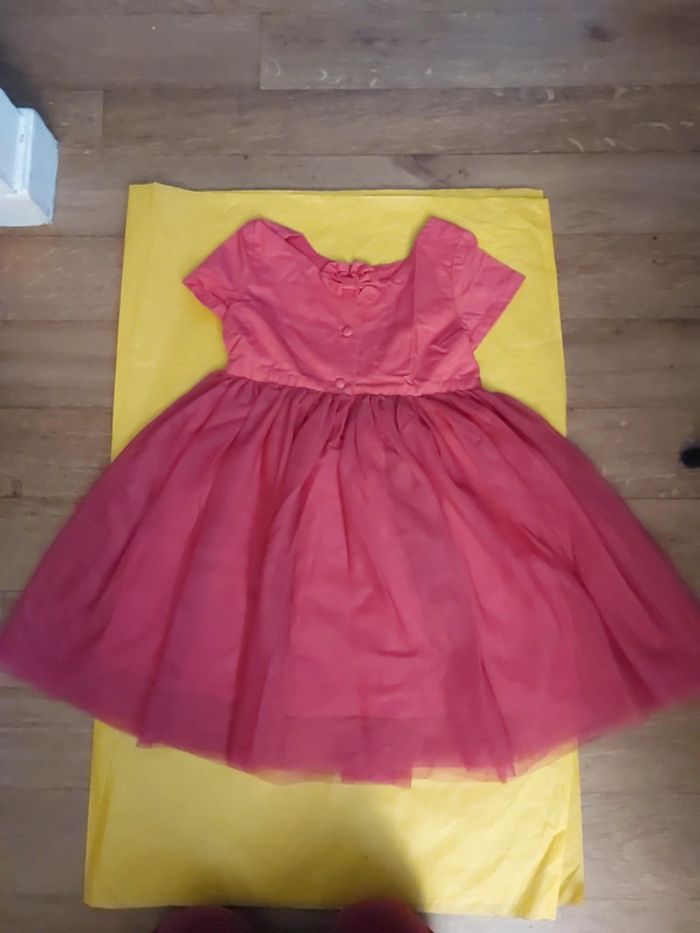 Jolie robe rouge qui est en très bon état général. Elle a 2 épaisseurs de tulle sur la robe. 100 % polyester Hauteur: 62 cm Marque: Verbaudet Taille:4 ans #robestelpha #4anstelpha