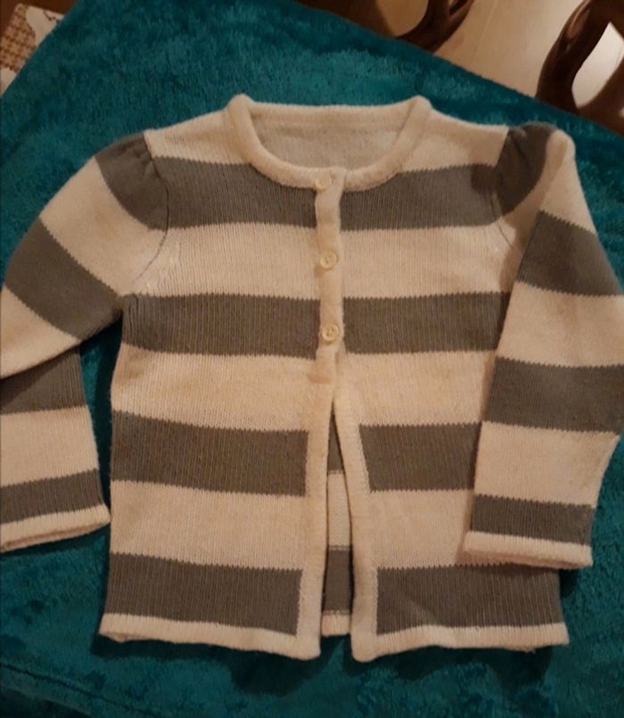 Gilet rayé gris et blanc - 4 ans - photo numéro 1