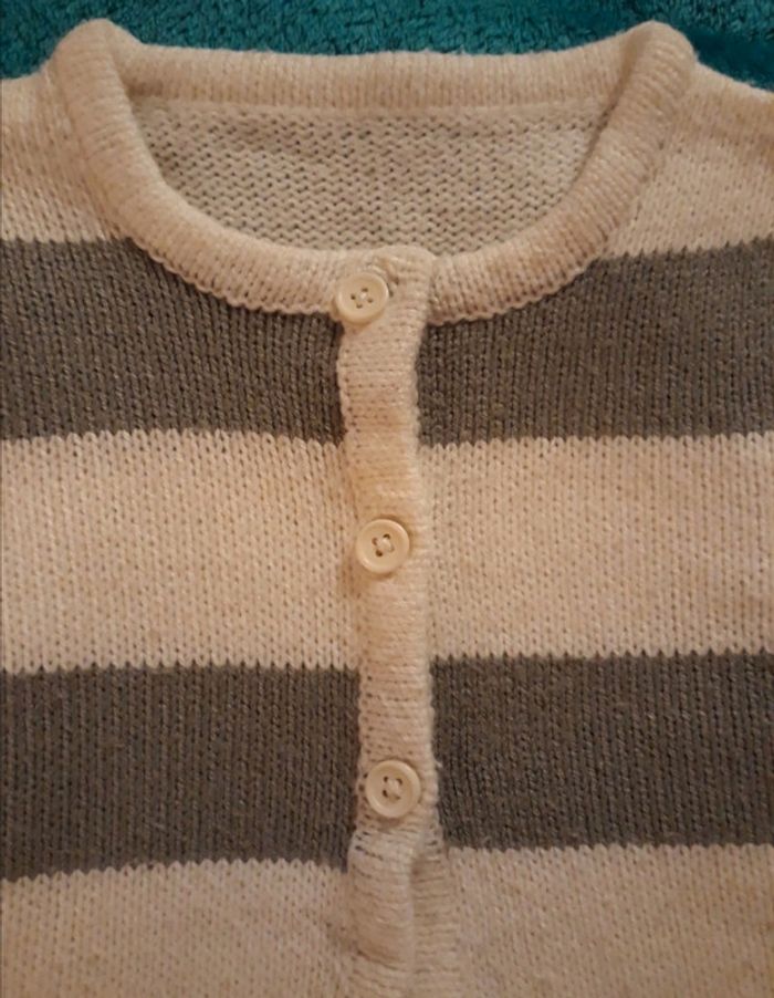 Gilet rayé gris et blanc - 4 ans - photo numéro 3