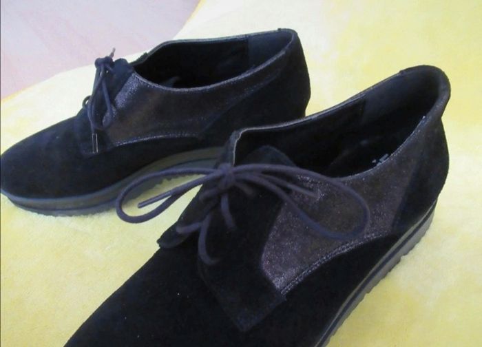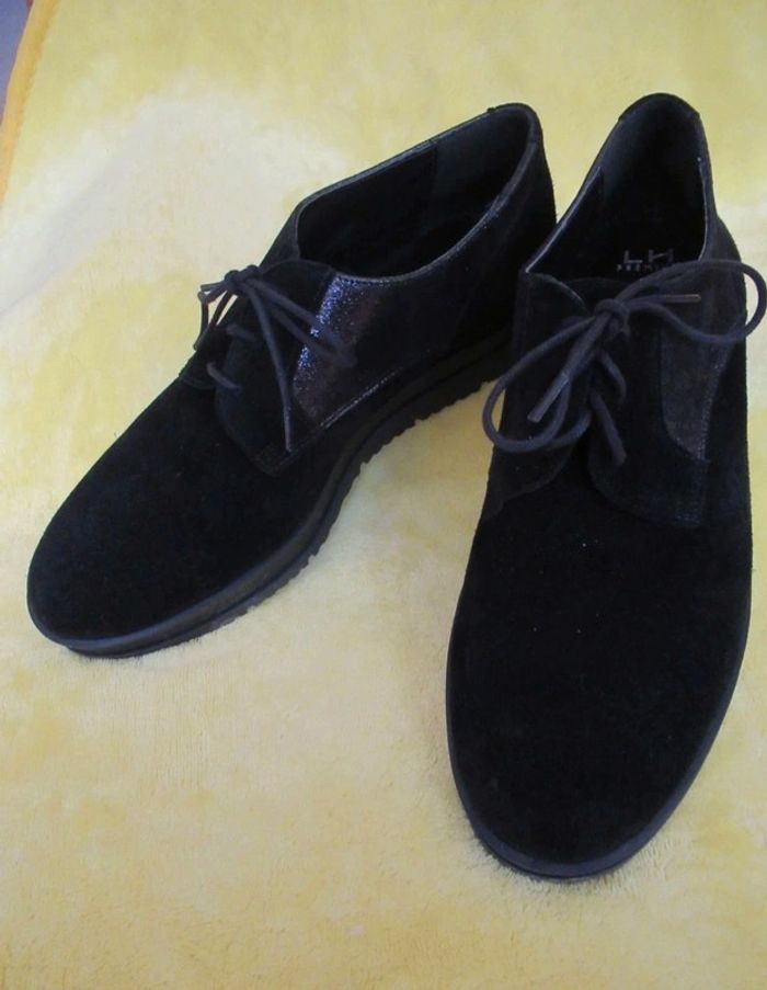 Elles sont quasi neuve, portée une seule fois mais trop grande malheureusement. Semelle en cuir, rehaussée. Fermeture à lacets. Elles sont très confortables. #chaussurestelpha #neufstelpha