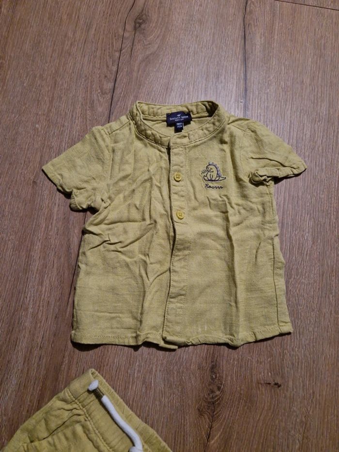 Ensemble chemise + short Sergent major Peu porté La couleur est un peu plus verte que sur les photos Taille 9 mois