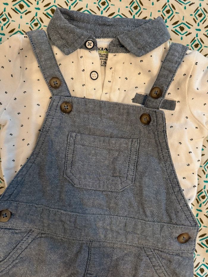 Bonjour 🤗 Vends salopette + polo MC en taille 12 mois, de chez Kiabi. 100% coton. En très bon état, seulement une toute petite tache derrière le polo. 🌸 #maurannejacquettaille12mois