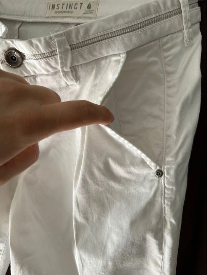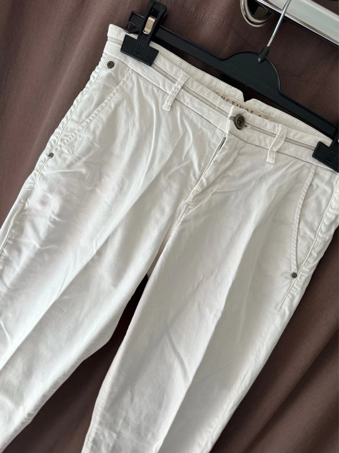 Bonjour 🤗 Vends chino blanc de la marque Bonobo, Taille 34 (XS) mais peut convenir à un S. Bouton supplémentaire vendu avec. En très bon état voir comme neuf car porté 1 ou 2 fois seulement. 🌸 #maurannejacquettailleXS #maurannejacquettailleS