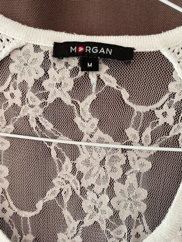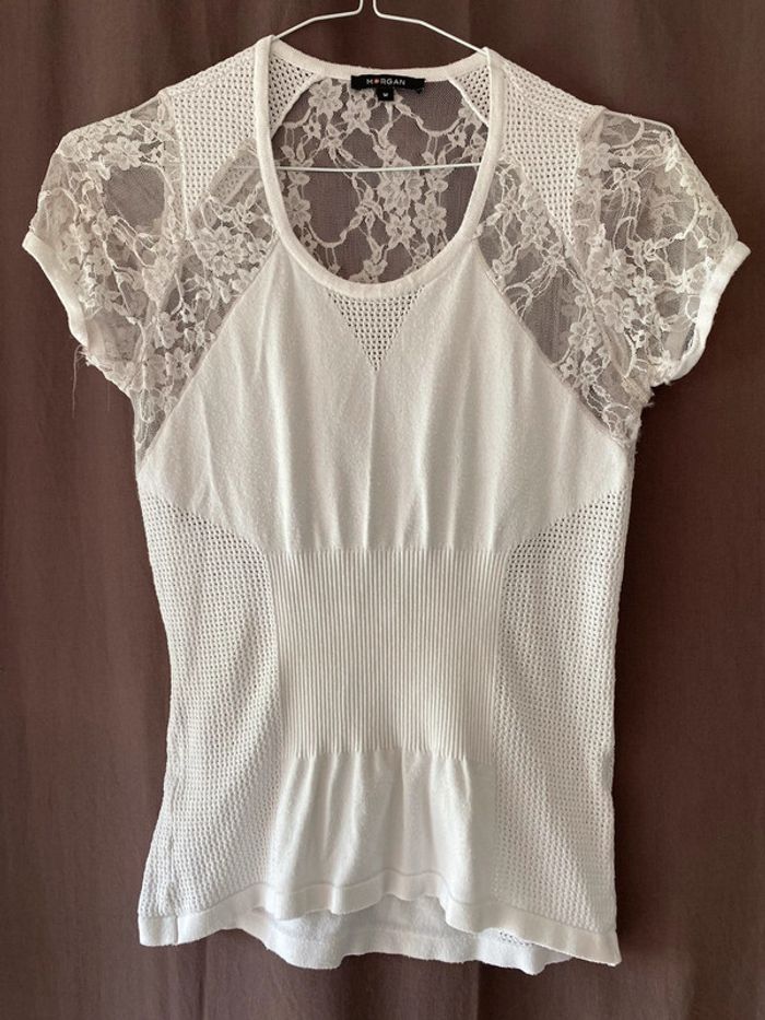 Bonjour 🤗 Vends tshirt blanc à dentelle, taille M mais je penses qu’il irai plus à un S, de chez Morgan. En bon état, quelques petites imperfections. 🌸 #maurannejacquetailleS #maurannejacquetailleM