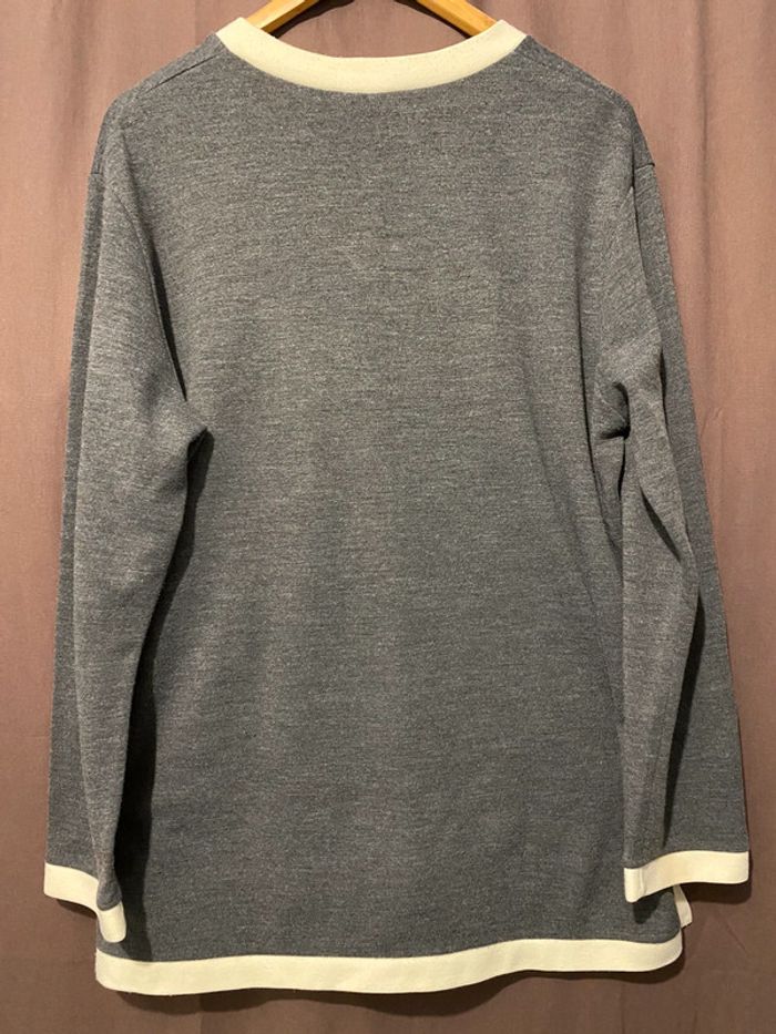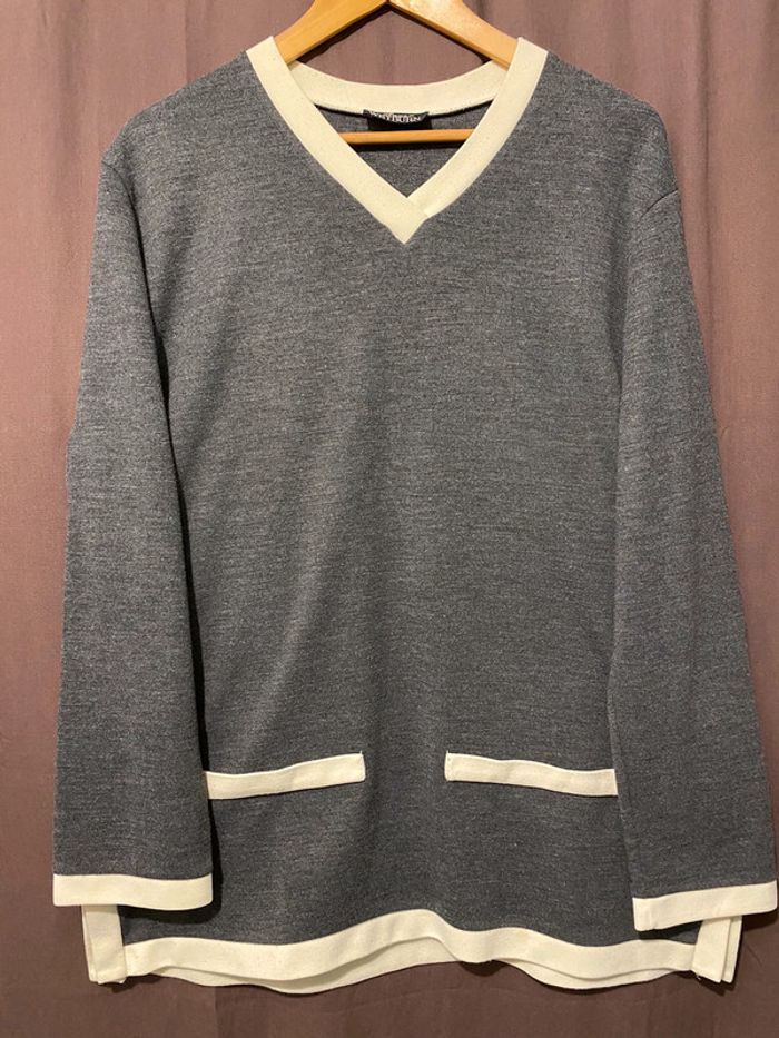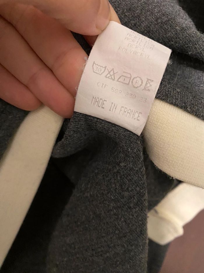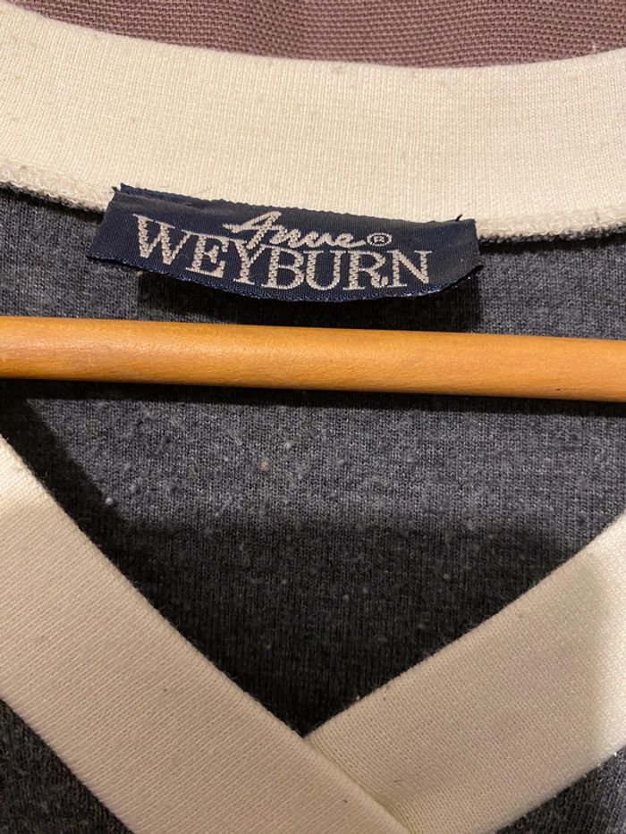 Bonjour 🤗 Vends pull col V gris et blanc, taille 48 de chez Anne Weyburn. En très bon état seulement taché à la manche que je n’ai pas essayé de laver donc à voir (voir dernière photo) 🌸 #maurannejacquetaille4XL
