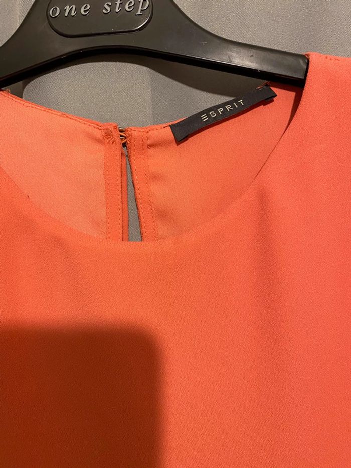 Bonjour, Vends, très jolie teeshirt de couleur un peu corail, de la marque Esprit. Taille 36. Un bouton de rechange est prévu avec. En très bon état. 🌸 #maurannejacquettailleS