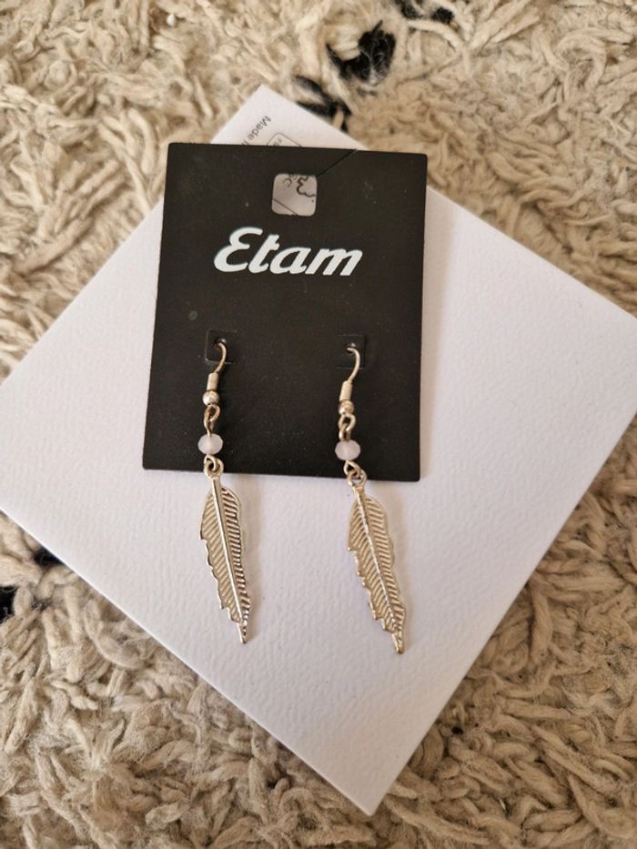 Boucles d'oreille Etam plume neuves avec étiquette - photo numéro 1