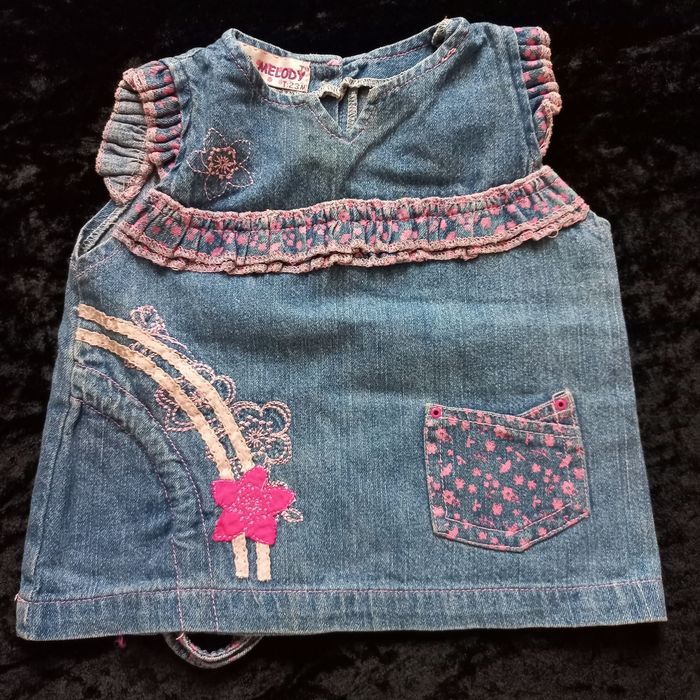 Haut ou Top en jean pour enfant 23 mois en très bon état, couleur bleu, marque : kiss melody.