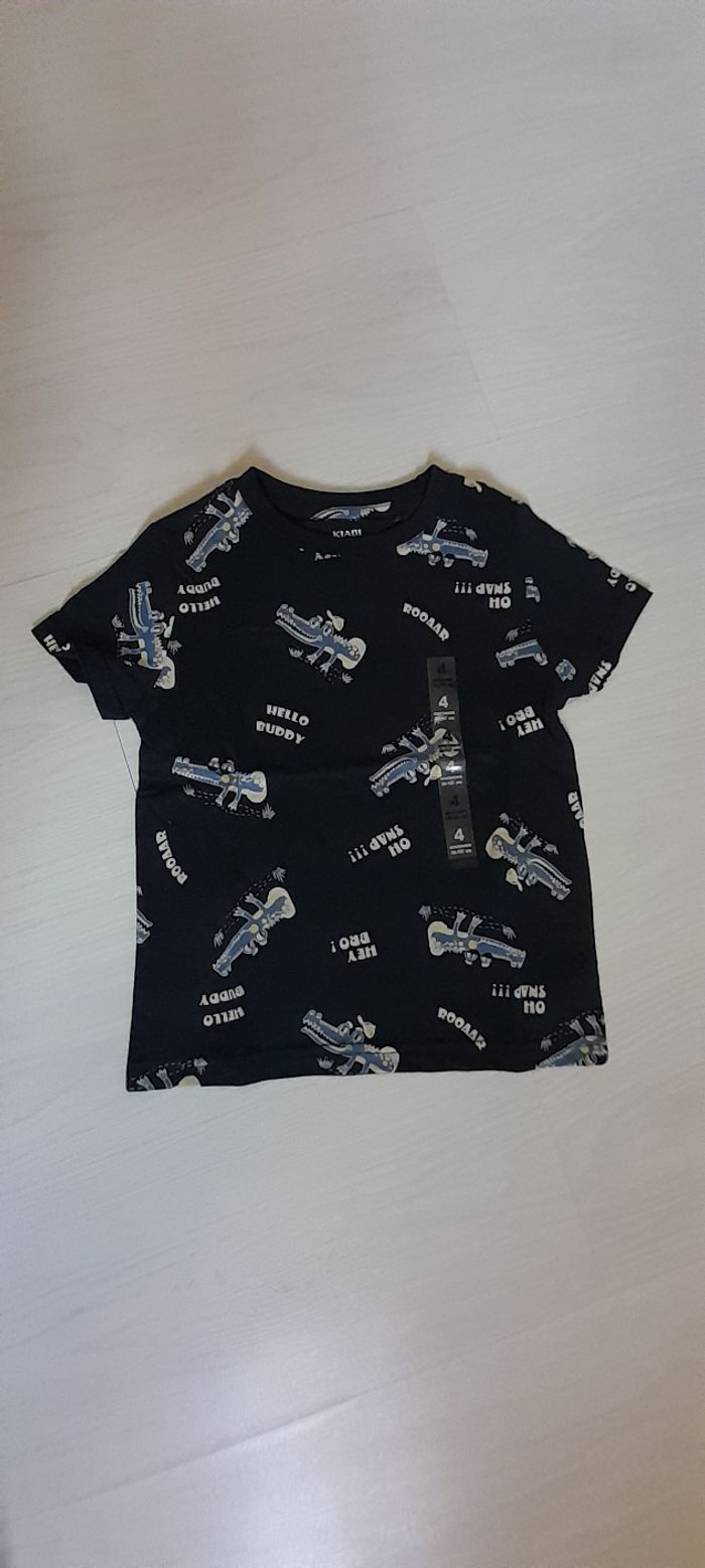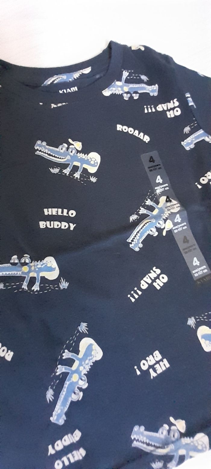 Tee-shirt T 4 ans Marque KIABI Couleur bleu marine avec motifs 100 % coton Neuf encore avec étiquette