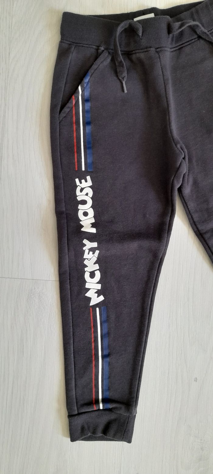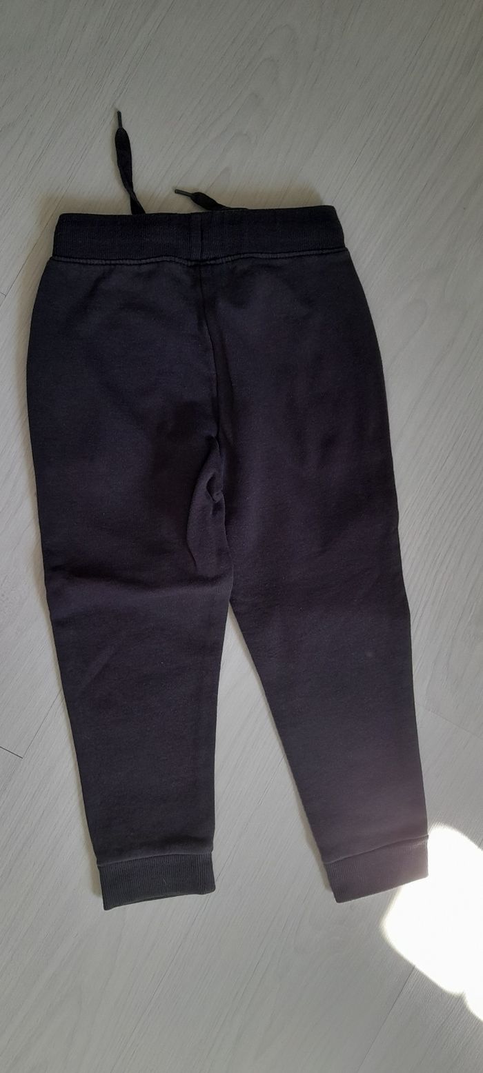 Pantalon T 4 ans Marque KIABI Couleur gris anthracite avec motifs devant 2 poches devant Taille élastique avec cordon 67% coton et 33% Polyester Quasi neuf très peu porté