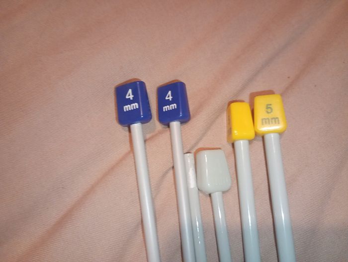 Vend 3 lots d'aiguilles à tricoter. 2 lots de 4 mm (une manque la taille au bout voir photo) 1 lot de 5 mm