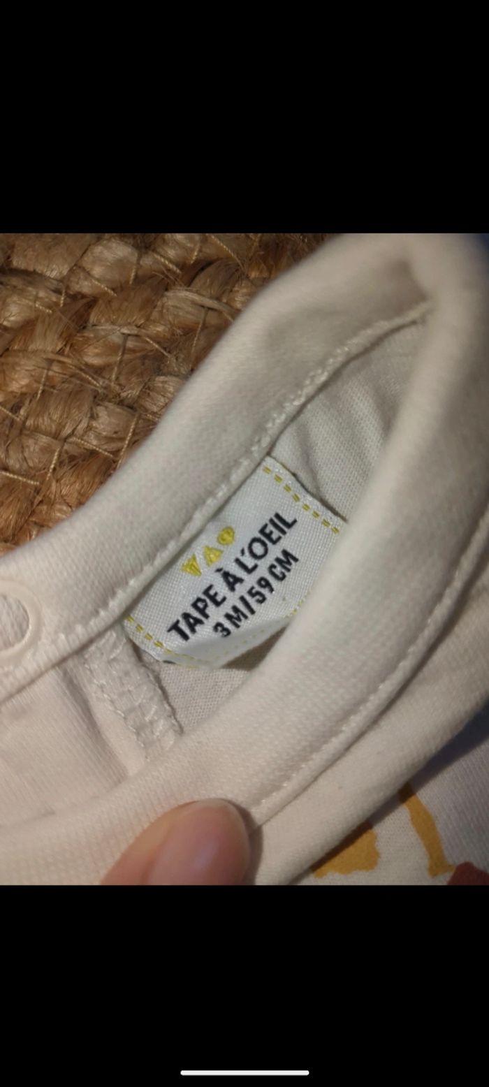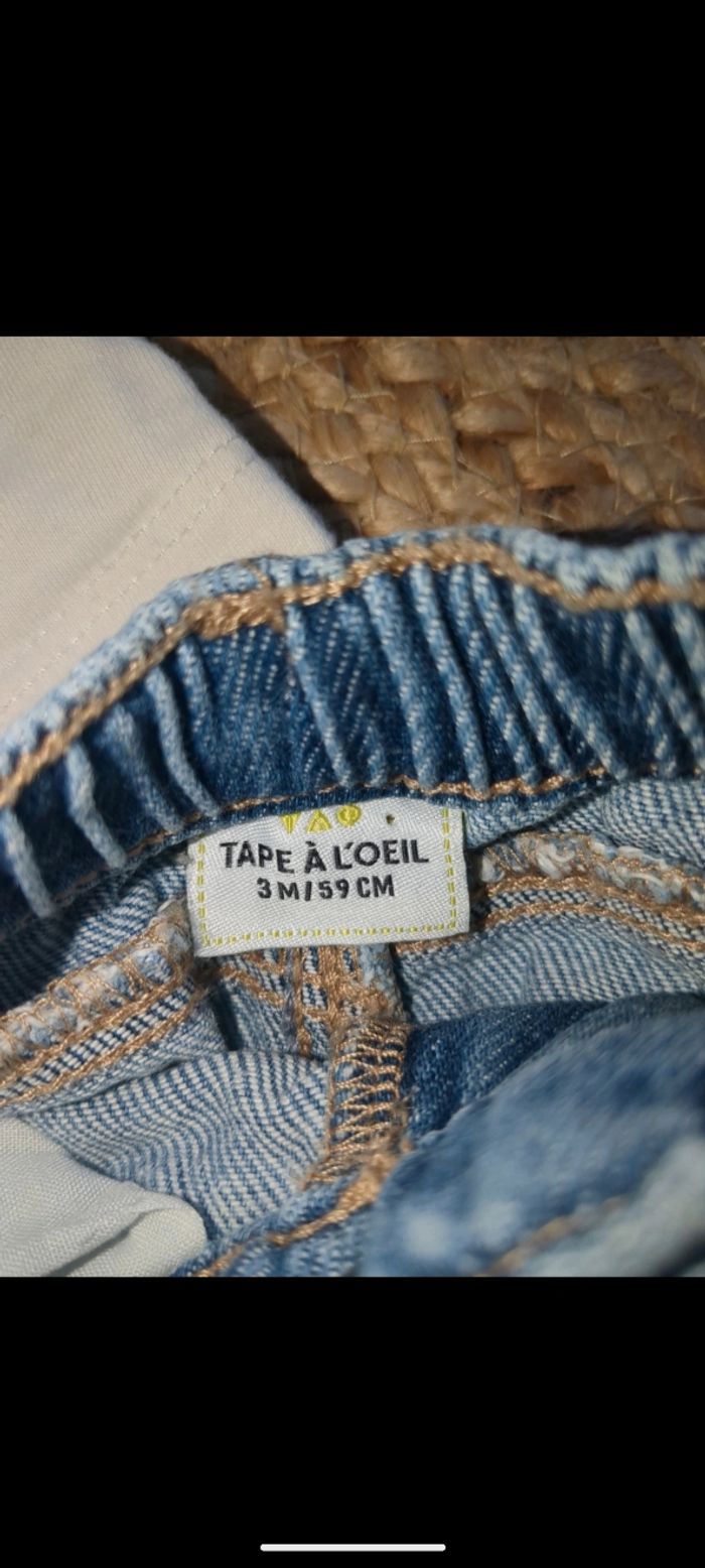 Jeans jamais porté, tee-shirt manches longues porté quelques fois. Pressions au dos. Marque : Tape a l'oeil