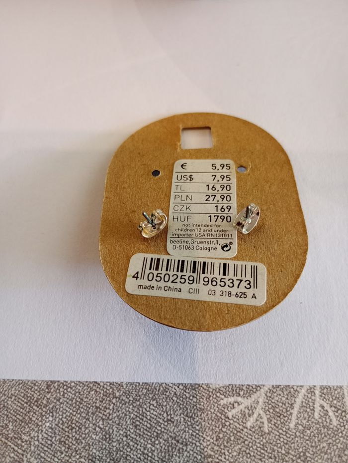 Boucles d'oreille coeur beige strass - photo numéro 2